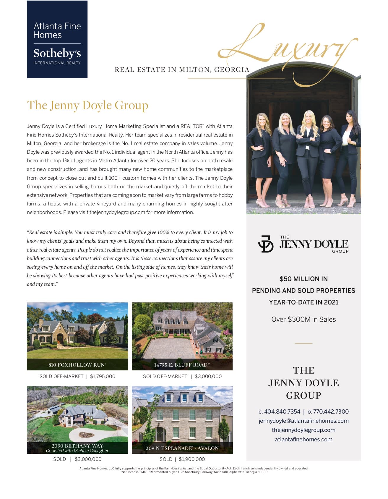 We offer the highest level of expertise, service, and integrity. The Jenny Doyle Group has helped hundreds of clients find their homes resulting in over $875M of closed residential real estate transactions in the last 20 years.