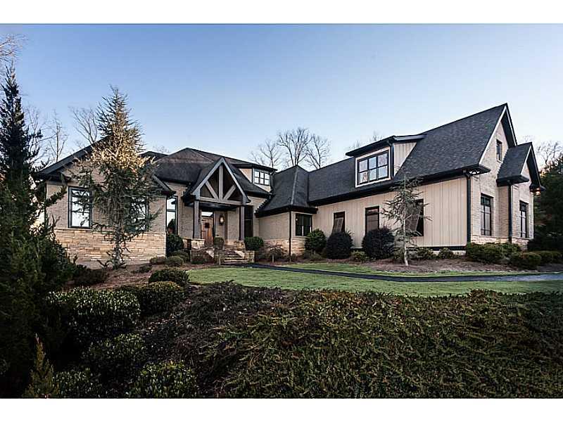 WILL GO FAST! Builder's personal home set on 1.35 acres overlooking the lake. Set in private enclave of sought-after Brookfield Country Club. Appraised at 1.8M, this home comes with a free golf membership. Chalet style home with 3 floors of designer finishes & stone/woodwork throughout featuring 4 bedrooms on the main, separate dining room seats 12+, private study on main w/ custom bookshelves, 2 large covered outdoor terraces overlooking lake, bonus upper loft with bed/bath, curved designer staircase to terrace level w/ center bar, wine cellar & fireplace living room |