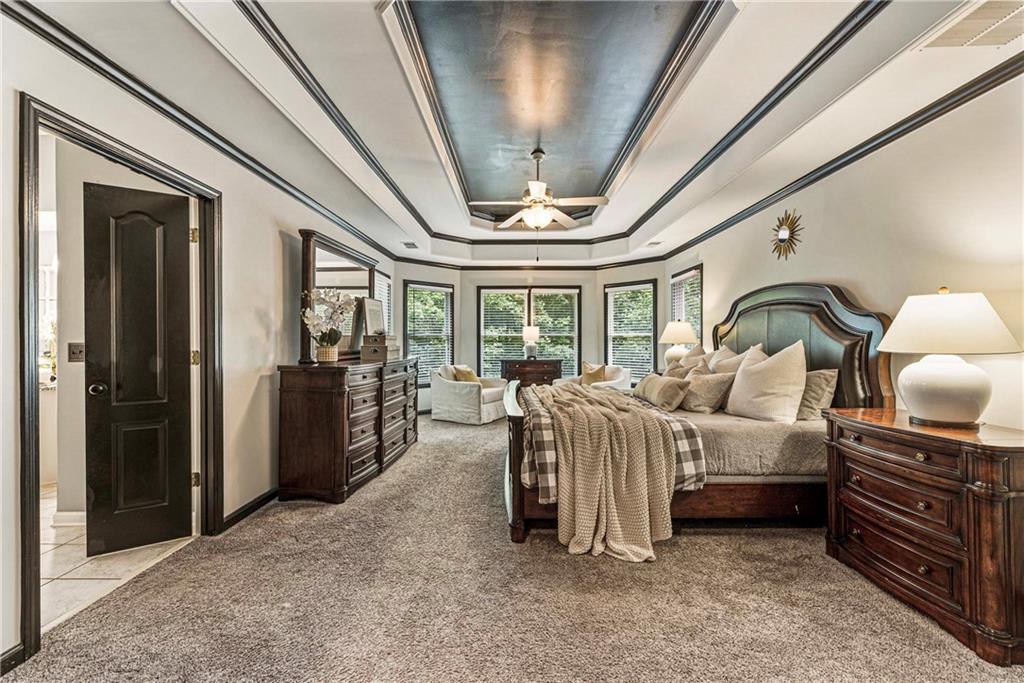 Upstairs, the oversized primary suite is your own private retreat, complete with tray ceilings and a spa-like bath featuring double vanities, a soaking tub and a separate shower. Three additional bedrooms include one with its own en suite and two connected by a Jack-and-Jill bath.