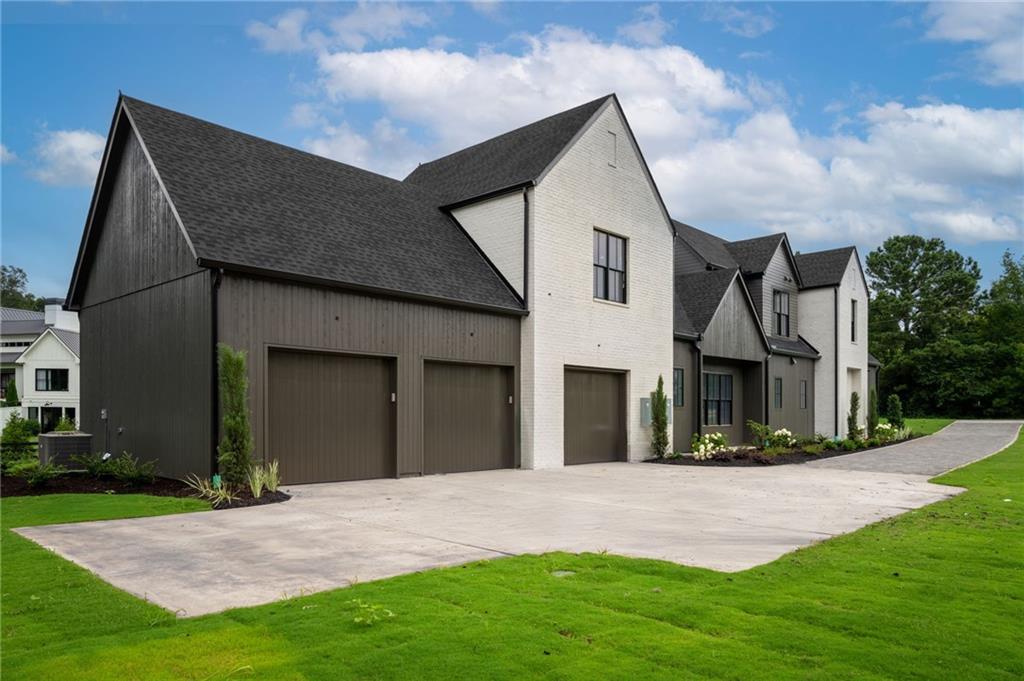 NEW CONSTRUCTION MODERN FARMHOUSE JUST MINUTES SOUTH OF CRABAPPLE MARKET. LOCATED IN TOP SCHOOLS AND BROOKFIELD COUNTRY CLUB COMMUNITY. This home offers what everyone in today's market is seeking- detailed finishes, walls of windows, soaring ceilings, stunning kitchen set on a 1.6+/- acre lot with private wooded views behind, on grade patio, yard and outdoor living space on main. 3 car garage with pass-through garage door. Gorgeous double door entry with 2-story fireside living space overlooked by the home's gourmet chef's kitchen featuring stone countertops, butler's pantry and walk in pantry. Living spaces open to a covered patio with fireplace, pool bathroom and walk out yard. Owner suite wing on main with large luxury bath and walk-in closets. As well as an additional bedroom or study on the main level. Upper level of home hosts three large bedroom suites as well as bonus room space above the garages with access from a back staircase. Home comes with full low voltage wiring. Option to join Brookfield Country Club (golf, 10 tennis court, 6 lane junior Olympic size pool with diving board and waterslide, restaurant, clubhouse and state-of-the-art fitness center). Prime location 5 minutes south of Downtown Milton/Crabapple, Less than 10 minutes to Downtown Roswell, and less than 15 minutes to Downtown Alpharetta and Avalon. Builder offering optional upgrades or pool option, warranty and great client relationships. Pool renderings photos 53, 54 and 58.