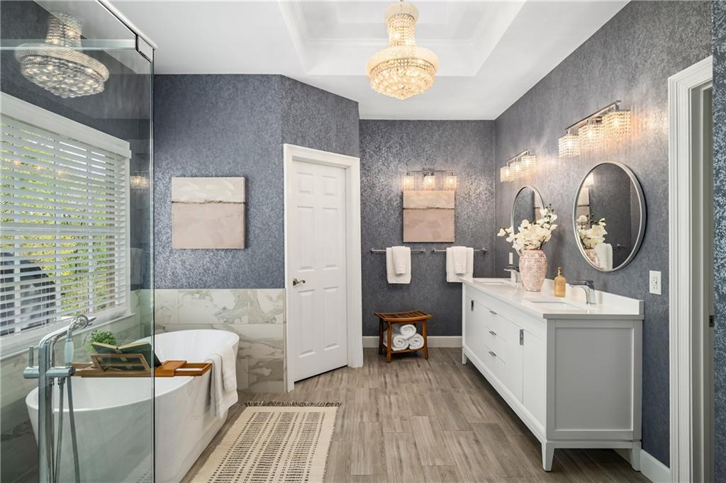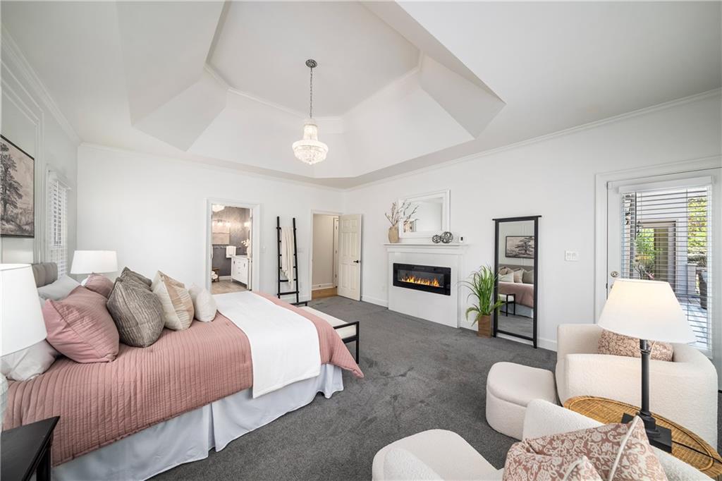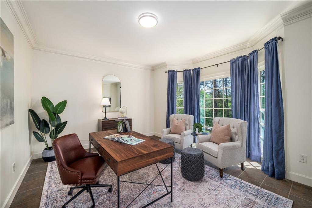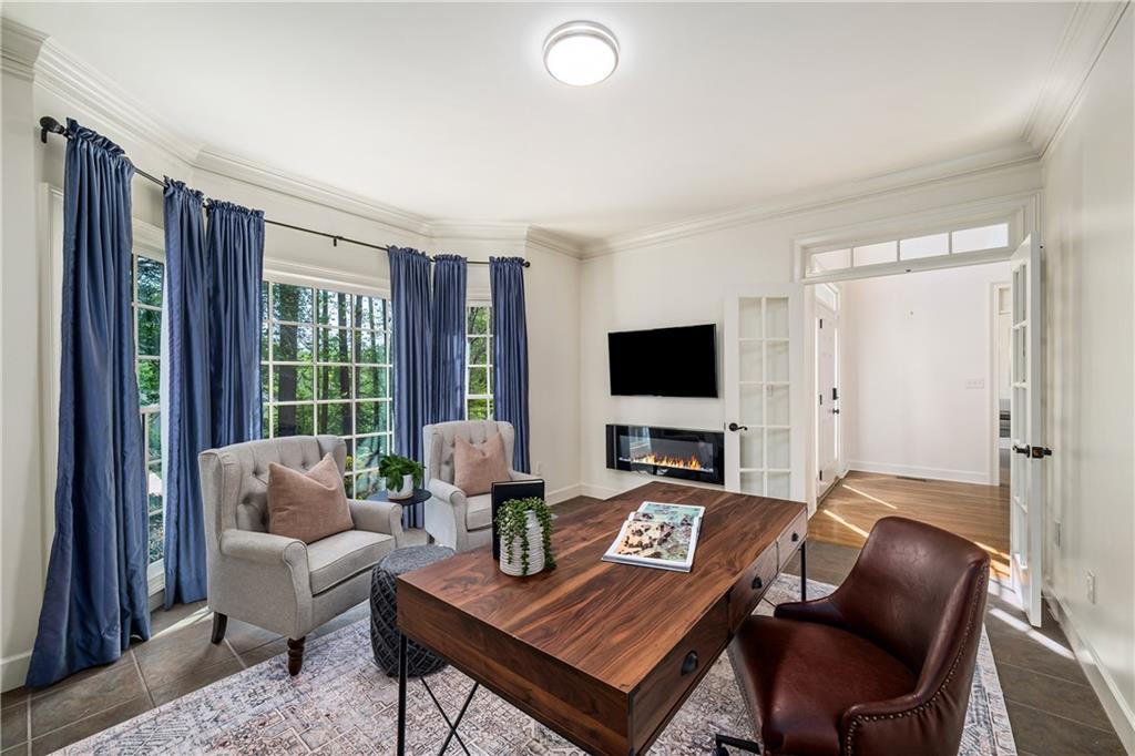 The main level features a private office behind double doors overlooking the front grounds, easily used as a study, formal living room, or whatever your lifestyle calls for, along with an elegant formal dining room. The luxurious primary suite on the main level offers a serene retreat, complete with a beautifully updated, spa-inspired bath and spacious walk-in closet.