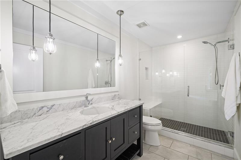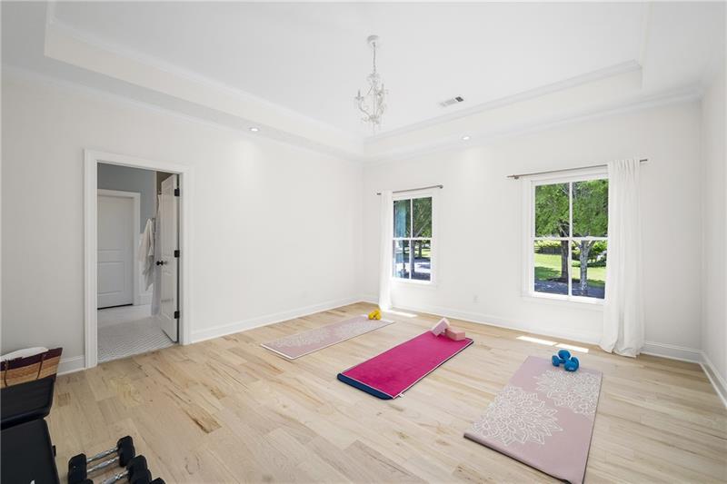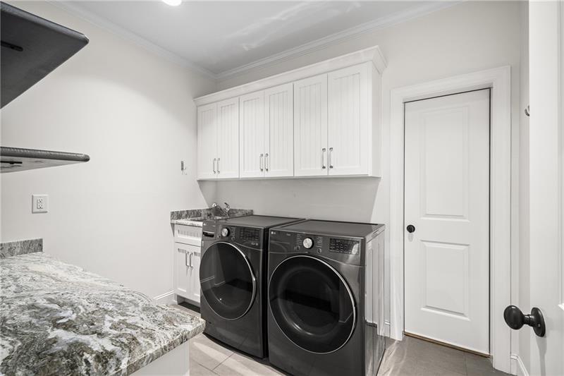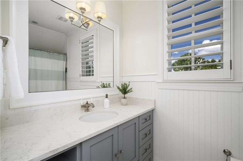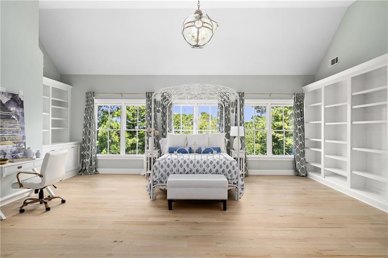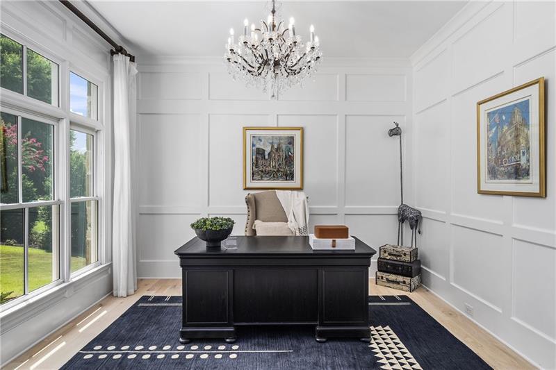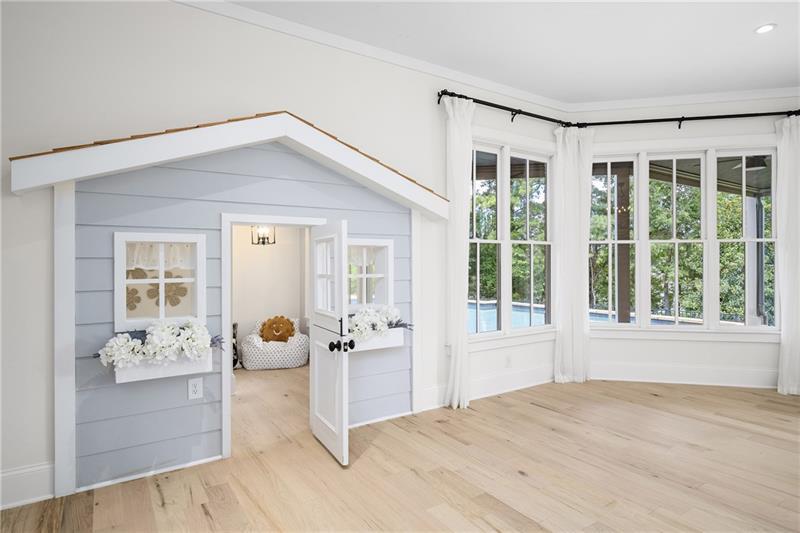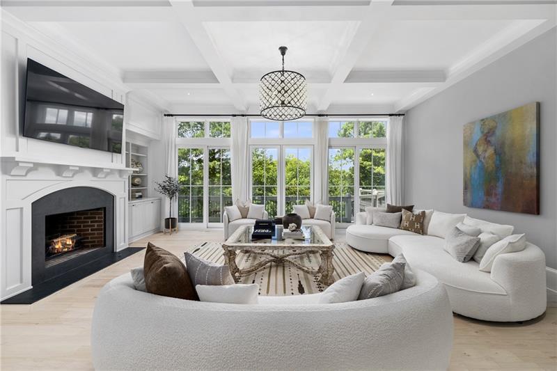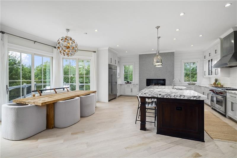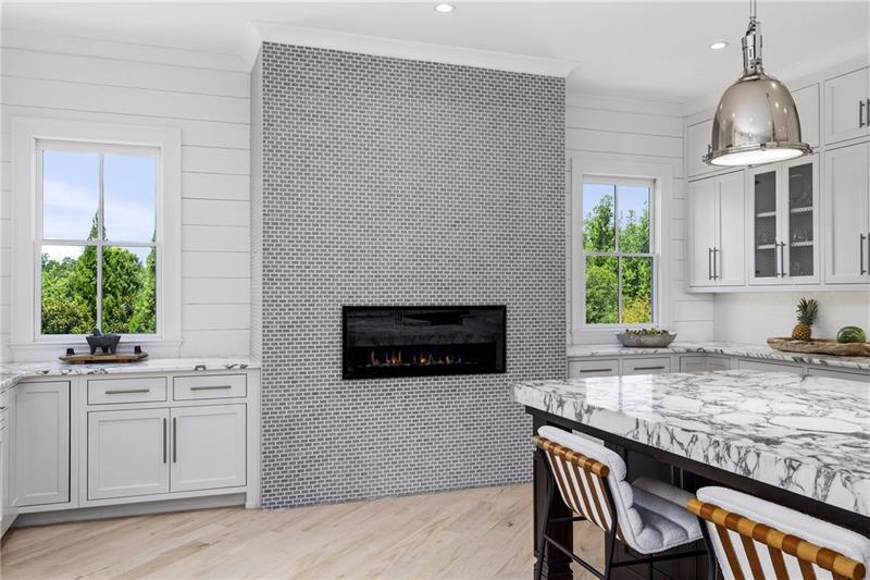Set on meticulously landscaped acreage in gated neighborhood of The Hayfield, known for its gas lantern street lights, tree- lined drive and copper mailboxes, this distinguished residence blends timeless architectural beauty with elevated upgrades throughout. A sweeping front porch lit by gas lanterns opens into a radiant two-story foyer. To one side, a private study with French doors and board and batten paneling offers a peaceful retreat. Opposite, a formal dining room features an exposed brick accent wall and French doors to the front porch-perfect for entertaining or quiet evenings. The main living room unfolds beneath a coffered ceiling, centered around a stately fireplace with custom built-ins. French doors flood the room with natural light and open to a sprawling rear deck, ideal for entertaining. The gourmet chef's kitchen is a true showpiece: custom white cabinetry to the ceiling, dual oversized islands topped with 3-inch marble, and a dramatic gas fireplace add warmth and elegance. Premier appliances include a Sub-Zero refrigerator, Wolf six-burner range with double ovens, two Bosch dishwashers, and a Sub-Zero wine refrigerator. A farmhouse sink and sunny breakfast area overlook the private backyard, while a walk-in pantry - with a second refrigerator, coffee/appliance bar, and abundant storage - offers unmatched convenience. A second friend's entry on main with charming dutch door leads to the main level laundry room, large mudroom with 6 built-in sections, and two half baths round out the main living areas with both function and style. The main-level owner suite is a serene retreat with bay window seating alcove, wood-beamed ceiling, and marble-surround fireplace. The spa-inspired owner's bath features dual marble-topped vanities, a freestanding soaking tub set against a dramatic glass-tiled accent wall, a marble shower, water closet with bidet, and a custom walk-in closet with built-ins and a large central island. Upstairs, a centrally located secondary primary suite or upper bonus features vaulted ceiling, custom built-ins, and a luxurious en suite bath. The upper holds five additional bedrooms each with en suite baths as well as a convenient second laundry room. Tucked between two upper bedrooms you will find a private flexible area that would work well for a study space, reading area or upper play zone. The finished terrace level offers stylish entertaining and everyday comfort. A full kitchen and lounge flow into a second family room with a whimsical playhouse. A spacious guest bedroom, a gym with spa-like bath, and a movie room with built-in speakers create versatile living spaces. A flex room awaits your vision-whether wine cellar, art studio, or meditation space. A storm room with reinforcement offers the potential for a secure space for safe room, gun room or storage. Additional space is entered from media that lends itself to optional golf simulator room. French doors open to the covered patio and a resort-style saltwater gunite pool with tanning ledge. A level lawn is bordered by mature trees, a playset, and lush landscaping. In 2023, the grounds were refreshed with new sod, irrigation, wood fencing, and vibrant plantings-hydrangeas, roses, and sculpted hedges. Upgraded exterior lighting creates a magical ambiance at dusk. An oversized three-car side garage accommodates SUVs, golf carts, or recreational gear with ease. The home is set in the most popular trio of schools including Milton, Northwestern and Birmingham Falls. Located in the quiet, sought-after neighborhood of The Hayfield with walkability (back walkway in neighborhood with it's own gate) to The Union Restaurant and Bar and just minutes from Downtown Crabapple/Milton, Downtown Alpharetta, and Avalon-this is a home where luxury, comfort, and convenience meet. Welcome Home! (The primary image has been digitally altered to show the home painted white).