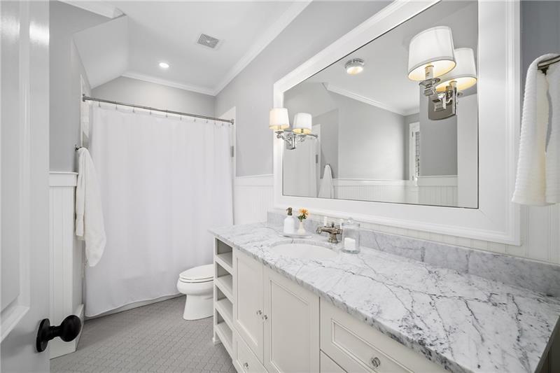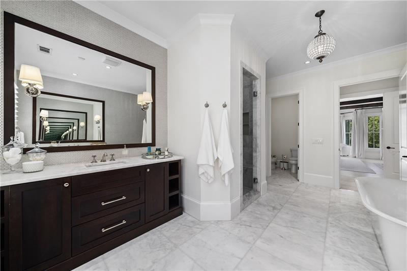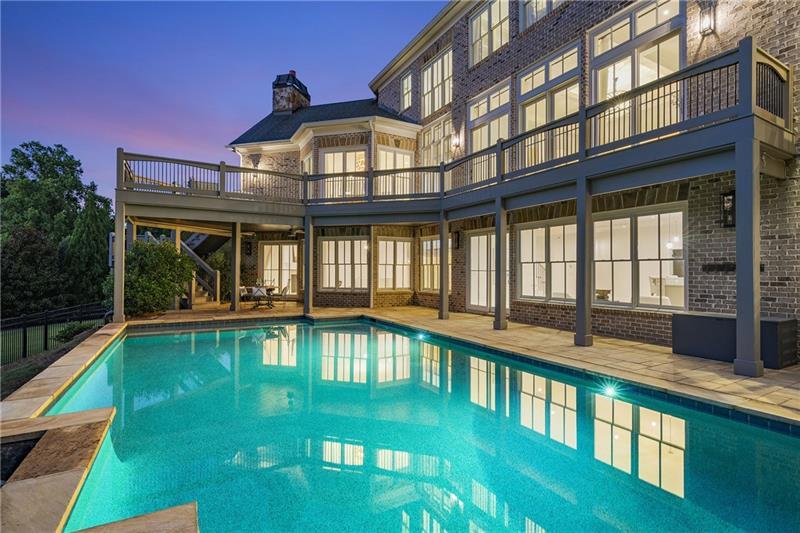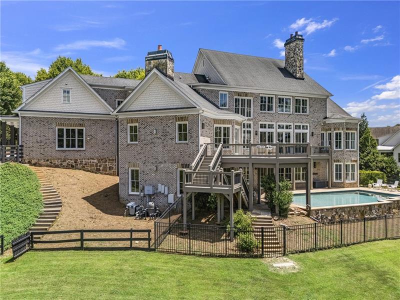 Set on meticulously landscaped acreage in gated neighborhood of The Hayfield, known for its gas lantern street lights, tree- lined drive and copper mailboxes, this distinguished residence blends timeless architectural beauty with elevated upgrades throughout. A sweeping front porch lit by gas lanterns opens into a radiant two-story foyer. To one side, a private study with French doors and board and batten paneling offers a peaceful retreat. Opposite, a formal dining room features an exposed brick accent wall and French doors to the front porch-perfect for entertaining or quiet evenings. The main living room unfolds beneath a coffered ceiling, centered around a stately fireplace with custom built-ins. French doors flood the room with natural light and open to a sprawling rear deck, ideal for entertaining. The gourmet chef's kitchen is a true showpiece: custom white cabinetry to the ceiling, dual oversized islands topped with 3-inch marble, and a dramatic gas fireplace add warmth and elegance. Premier appliances include a Sub-Zero refrigerator, Wolf six-burner range with double ovens, two Bosch dishwashers, and a Sub-Zero wine refrigerator. A farmhouse sink and sunny breakfast area overlook the private backyard, while a walk-in pantry - with a second refrigerator, coffee/appliance bar, and abundant storage - offers unmatched convenience. A second friend's entry on main with charming dutch door leads to the main level laundry room, large mudroom with 6 built-in sections, and two half baths round out the main living areas with both function and style. The main-level owner suite is a serene retreat with bay window seating alcove, wood-beamed ceiling, and marble-surround fireplace. The spa-inspired owner's bath features dual marble-topped vanities, a freestanding soaking tub set against a dramatic glass-tiled accent wall, a marble shower, water closet with bidet, and a custom walk-in closet with built-ins and a large central island. Upstairs, a centrally located secondary primary suite or upper bonus features vaulted ceiling, custom built-ins, and a luxurious en suite bath. The upper holds five additional bedrooms each with en suite baths as well as a convenient second laundry room. Tucked between two upper bedrooms you will find a private flexible area that would work well for a study space, reading area or upper play zone. The finished terrace level offers stylish entertaining and everyday comfort. A full kitchen and lounge flow into a second family room with a whimsical playhouse. A spacious guest bedroom, a gym with spa-like bath, and a movie room with built-in speakers create versatile living spaces. A flex room awaits your vision-whether wine cellar, art studio, or meditation space. A storm room with reinforcement offers the potential for a secure space for safe room, gun room or storage. Additional space is entered from media that lends itself to optional golf simulator room. French doors open to the covered patio and a resort-style saltwater gunite pool with tanning ledge. A level lawn is bordered by mature trees, a playset, and lush landscaping. In 2023, the grounds were refreshed with new sod, irrigation, wood fencing, and vibrant plantings-hydrangeas, roses, and sculpted hedges. Upgraded exterior lighting creates a magical ambiance at dusk. An oversized three-car side garage accommodates SUVs, golf carts, or recreational gear with ease. The home is set in the most popular trio of schools including Milton, Northwestern and Birmingham Falls. Located in the quiet, sought-after neighborhood of The Hayfield with walkability (back walkway in neighborhood with it's own gate) to The Union Restaurant and Bar and just minutes from Downtown Crabapple/Milton, Downtown Alpharetta, and Avalon-this is a home where luxury, comfort, and convenience meet. Welcome Home!