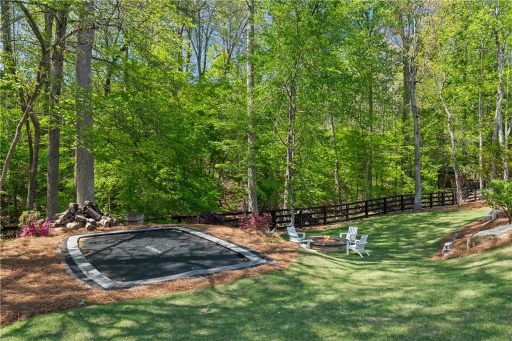 The finished terrace level expands the home's entertainment potential with a professional theater and a 96-inch screen, a full bar with wine storage, game and lounge areas and a private guest suite or fitness space. Easily access the backyard from the lower-level patio. Outside, enjoy the beautifully landscaped grounds, a tranquil fire pit, an in-ground trampoline, a resort-style pool with a sizable tanning shelf and a spa with a cascading rock waterfall into the pool- truly designed for ultimate relaxation.