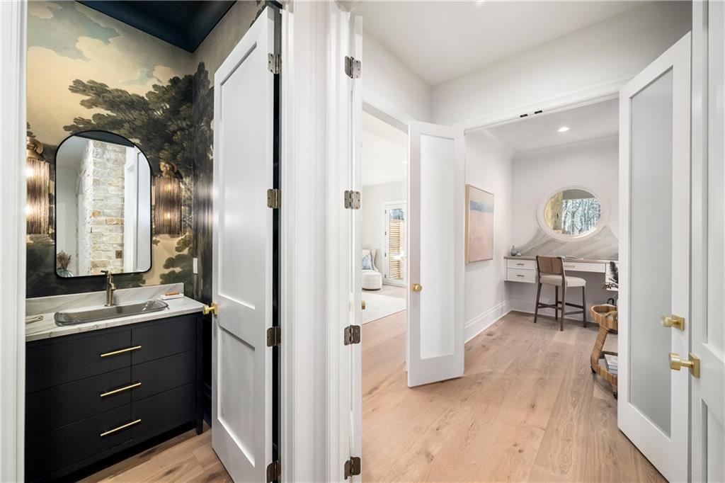 This is the home everyone will be talking about. Tucked amid the rolling pastoral landscape of Milton--once part of the historic 1832 Land Lottery and just beyond the site of the early-1900s Freeman's Post Office--this newly constructed 6-bedroom, 7,700+ sq. ft. estate is a modern landmark rooted in timeless Southern heritage. Designed to evoke the permanence and presence of a classic English manor, the home is a collaboration between architectural designer Trademark, the refined interiors of Katie Fox with Hart & Lock, and the expert craftsmanship of Cory Regan with Trademark. Set on over 2 acres of private, gated grounds, its exterior presents an unforgettable first impression--an elegant fieldstone facade accented by hand-carved limestone, true cedar detailing, oversized artisan wood corbels, and Bevolo copper gas lanterns. Solid copper flashing, premium roofing, and Windsor architectural windows speak to the home's quality and longevity, while steel doors and custom Douglas fir entry doors add strength, scale, and authenticity. Inside, the residence unfolds with 10-12 foot ceilings, artisanal plasterwork, and white oak flooring with a custom entry design, blending old-world craftsmanship with a warm contemporary vision. A dramatic foyer introduces a series of thoughtfully composed spaces, including a living room centered on a sculpted plaster fireplace with a herringbone surround and bespoke millwork. The chef's kitchen is a showcase of beauty and function, featuring Kingdom custom cabinetry, natural quartzite countertops, brass fixtures, premium Wolf appliances, Sub-Zero refrigeration, a Miele built-in coffee system, and a seamlessly connected scullery with checkerboard stone floors. A custom banquette anchors the breakfast area, while the dining room and primary suite are enriched with decorative walls and ceilings and exquisite lighting selections. The main-level primary suite is a private retreat, offering dual closets and a truly spa-caliber bath with a dramatic barrel-vaulted entry, a jewel-box glass shower, digital fixtures, and artisan detailing. Upstairs, four additional bedroom suites--each with marble-appointed baths, designer lighting, and custom vanities--provide the experience of a boutique hotel. A charming built-in reading nook and a dedicated bunk room add warmth and personality for family and guests. The terrace level is awaiting your design that could include a media room, bar, fitness studio, sauna, cold plunge, or even a private golf simulator. Currently finished is a pool bath and a bedroom. Technology is subtly integrated throughout the home, including advanced security, wired systems, zoned high-efficiency HVAC, integrated speakers, and infrastructure for future pool and equipment upgrades. Outside, the property transforms into a resort-style experience. A covered porch with a double-sided fireplace, raised limestone hearths, and outdoor sound opens to the future pool, sports court. The lush landscaping designed by Land Plus creates the perfect setting for over 600 sq. ft. of outdoor living space that allows year-round enjoyment and elegant entertaining. Every detail of this estate--from the solid 8' doors, exposed steel trusses, reclaimed beams, and stone surrounds to its high-performance mechanicals and foundation waterproofing--reflects a commitment to craftsmanship, longevity, and a standard seldom seen in new construction. A rare offering in Milton, this home tells the story of the land on which it stands--honoring the region's past while delivering an extraordinary lifestyle for today. Welcome home!