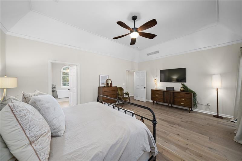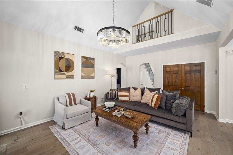 Outdoors, enjoy a fenced, private backyard with a level lawn--perfect for gatherings or play. The community has a swimming pool, and is within close proximity to nearby trails, Wills Park, and the shops and dining of Crabapple, Avalon, and downtown Alpharetta. Priced below appraisal by J Alan Daniel. Photos 29-31 are virtually edited to show what yard would look like with new sod. Seller offering landscape credit.