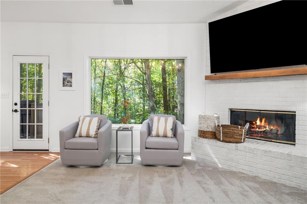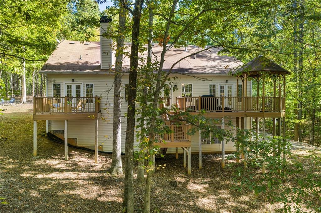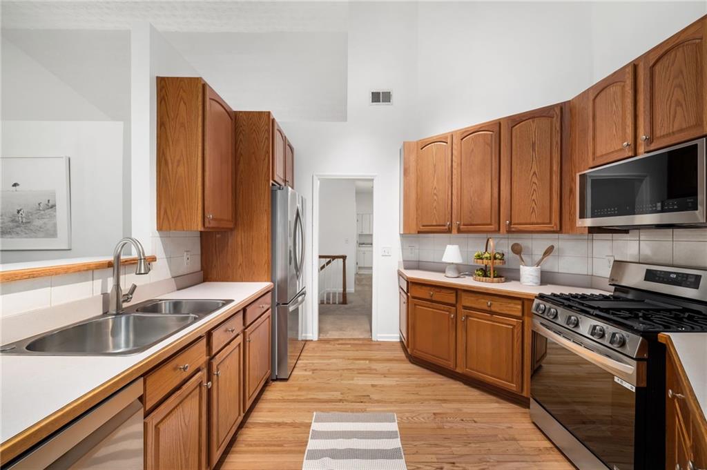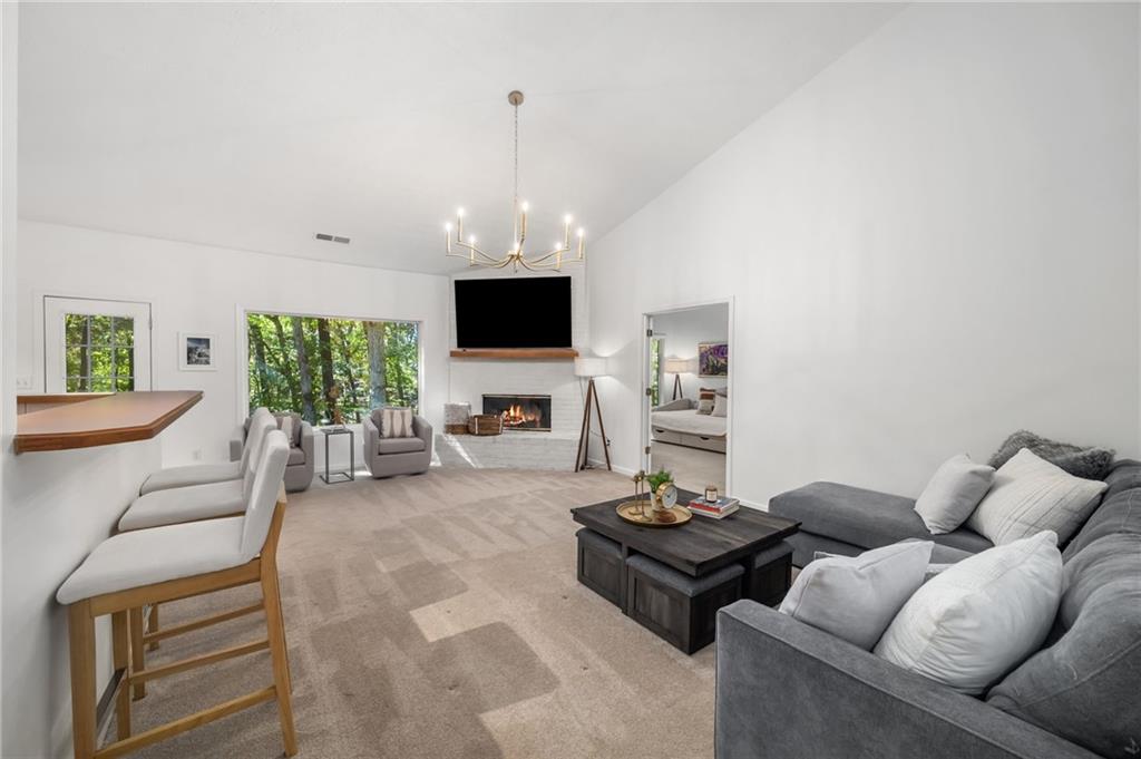 A long, private driveway leads to a freshly painted brick and siding residence with a side-entry two-car garage. Inside, a two-story foyer opens to airy, vaulted living and dining spaces, where natural light pours through expansive windows. The kitchen features brand-new stainless steel appliances, a gas range, a walk-in pantry and a casual breakfast nook that opens to a spacious deck overlooking the secluded backyard. The kitchen enjoys views directly into the everyday living area.