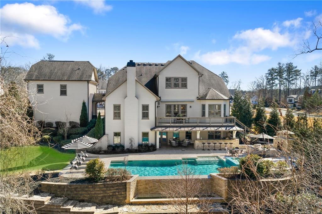Recent improvements and notable upgrades include a whole-house Generac generator, Aquasana water filtration system, complete interior repainting, refreshed lighting, designer wallcoverings, professional landscape lighting, new glass pool tiles, refreshed pool surround travertine tiles, and newly replaced carpeting in the primary suite. Offering refined comfort, modern systems, and meticulous care, this exceptional property is just minutes from parks, walking trails, shopping and dining in Crapabble, Downtown Alpharetta, Avalon and more. Welcome home!