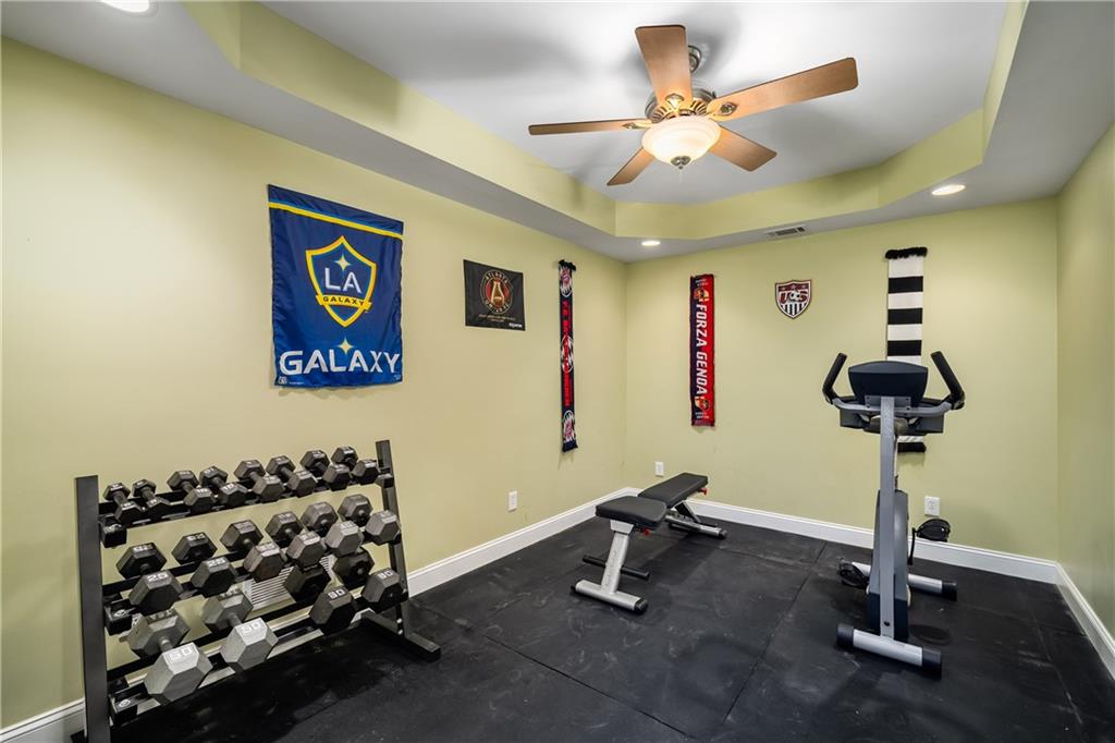 The fully finished basement expands the living space with an office, exercise room, bar, and full bath. Outdoor living is just as impressive with a landscaped private backyard, mature trees, and multiple entertaining spaces, including a covered deck, a walk-out patio with fireplace, and ample space for dining and lounging.