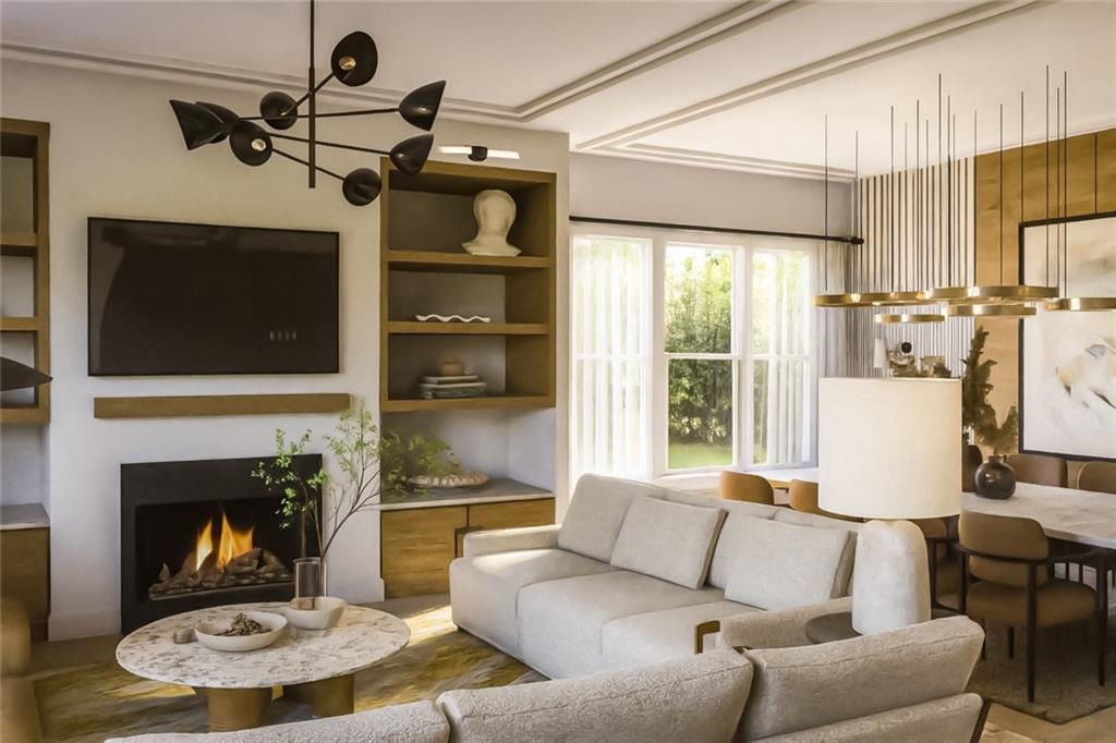 Inside, the homes showcase a refined level of finish: 10-foot ceilings on the main and terrace levels, wide-plank hardwood flooring, detailed accent walls, multi-slide and French doors, and frameless glass showers. Optional hydraulic elevators provide effortless access between all levels. Gourmet kitchens elevate culinary experiences with oversized quartz islands, JennAir appliance suites, custom range hoods, open shelving, and separate sculleries offering additional prep space and a second dishwasher.