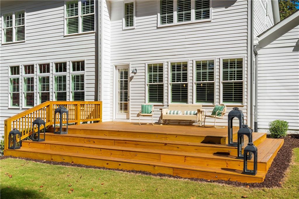 Set on a private acre in Milton's coveted Highgrove community, this 5-bedroom, 5.5-bath farmhouse retreat effortlessly blends timeless charm with modern sophistication. The main floor impresses with soaring 10-foot ceilings, creating an open and airy ambiance throughout. At the heart of the home, the gourmet kitchen features beamed ceilings, double ovens, abundant cabinetry, and a spacious island with seating for four. A walk-in pantry offers exceptional storage, while the adjoining breakfast area opens to a brand-new deck overlooking the private, wooded backyard. The fireside family room flows seamlessly from the kitchen, enhanced by plantation shutters, shiplap, and custom trim for a warm yet refined feel.