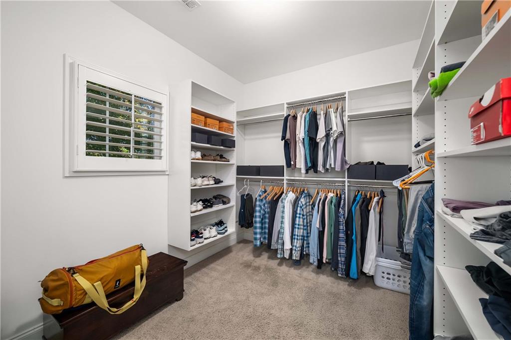 The main level also includes a formal dining room with a butler's pantry, a private office, and a full guest suite with its own en-suite bath. A separate powder room serves the main living areas, and a thoughtfully designed drop zone is conveniently located just off the 3-car garage. Upstairs, the 9-foot ceilings complement the oversized primary suite, a luxurious retreat with dual walk-in closets and a vaulted spa-inspired bath featuring a soaking tub, double vanities, and a separate shower. Three additional bedrooms each include private en-suite baths, while a spacious laundry room provides added convenience.