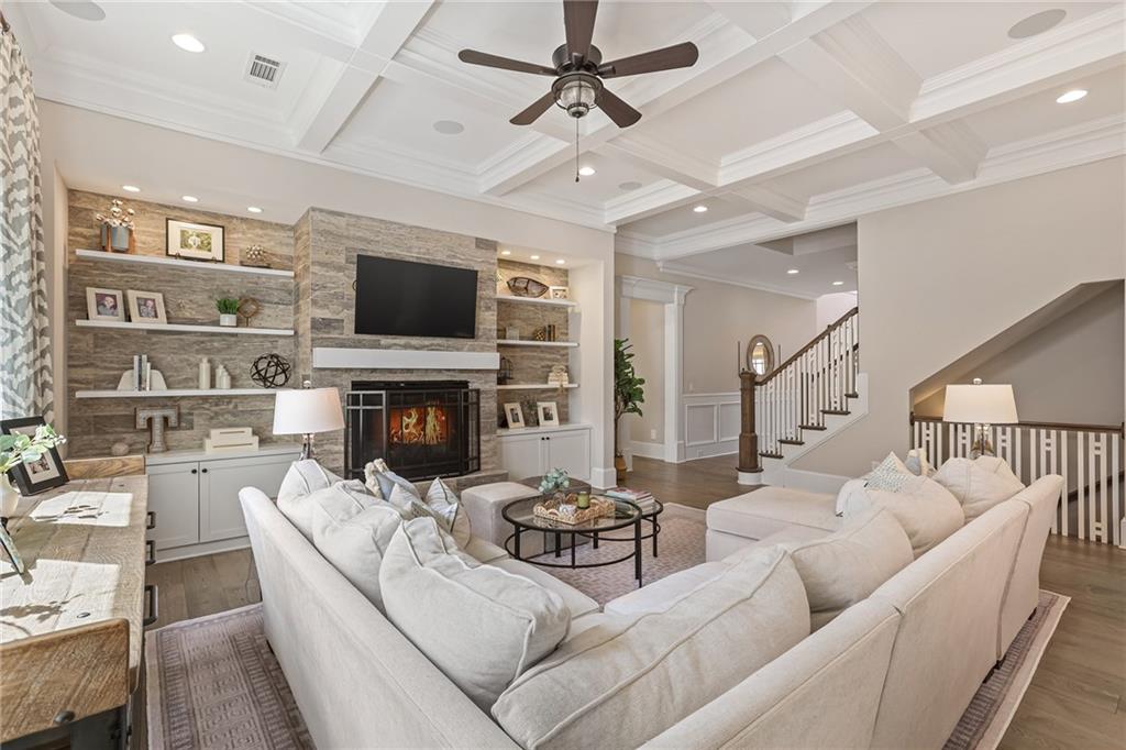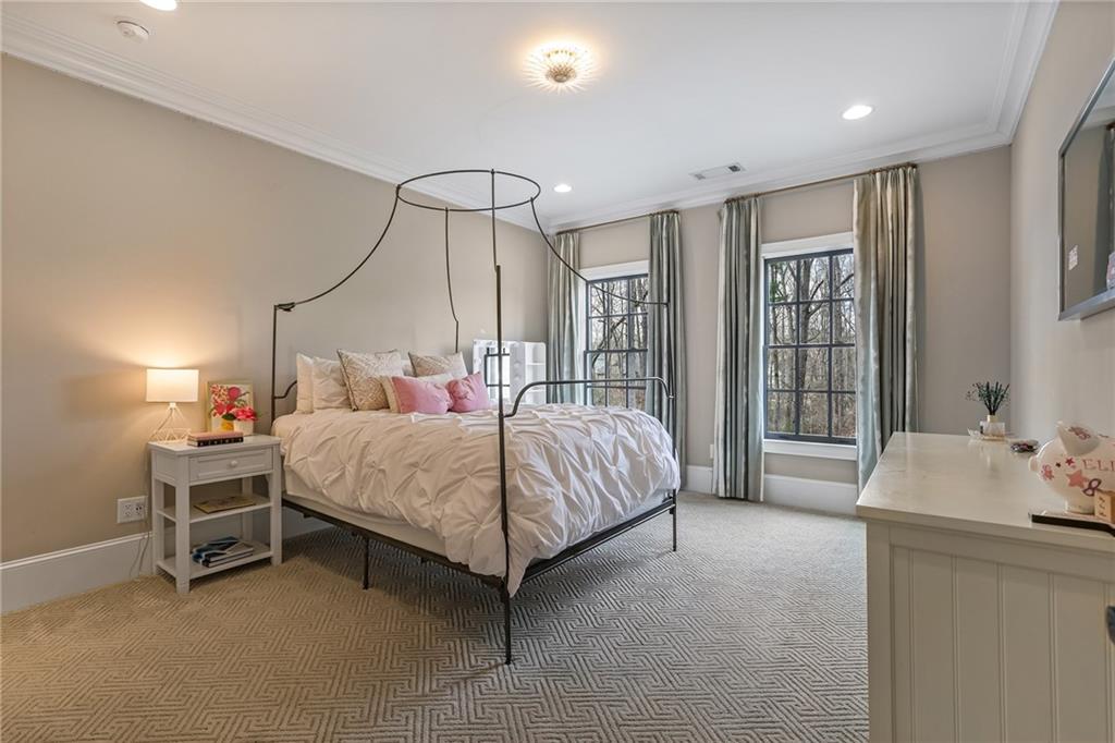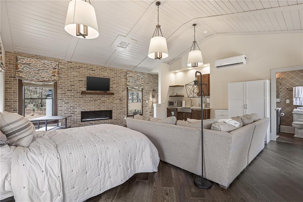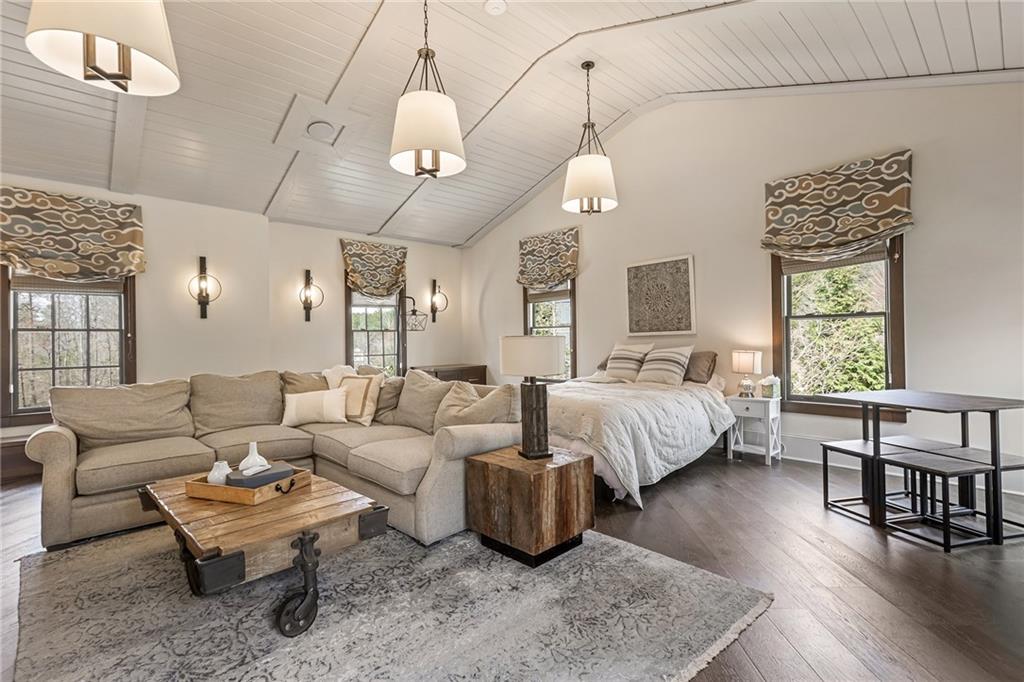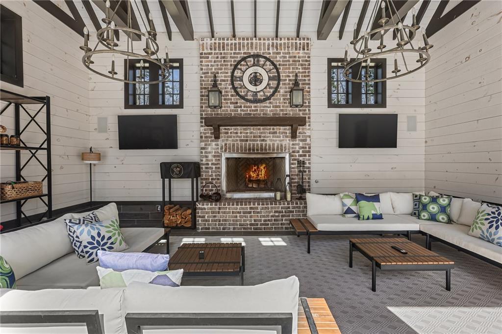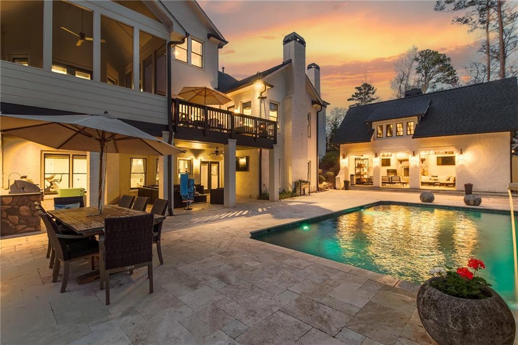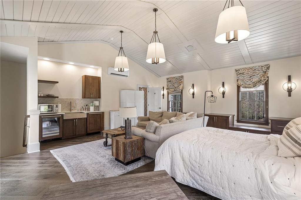 Experience the elegance of a better-than-new construction on 2.45 acres in Milton's highly sought-after The Grove neighborhood. This timeless brick home perfectly blends modern smart home technology and classic design, enhanced by private, breathtaking outdoor living spaces. The home commences with a welcoming covered front porch and double entry doors opening to the inviting foyer. Off the foyer, an elegant dining room features beautiful millwork, hardwood floors and a butler's pantry with a wet bar connecting to the kitchen. The heart of the home is the stunning gourmet kitchen outfitted with an oversized island, white double-stacked cabinetry, a pot filler over the range and JennAir stainless steel professional-grade appliances. The kitchen flows seamlessly into a fireside dining area and the adjacent family room. A half bathroom, a laundry room and a mudroom with access to all four garages are easily accessed from the kitchen. Enjoy designer lighting, custom window treatments and meticulously crafted details, creating a warm and inviting atmosphere. Relax and unwind in the primary suite, conveniently located on the main level for easy living. Elegant and refined, the bedroom features floor-to-ceiling judge paneling and French doors to a private sun porch overlooking the backyard. The en suite bathroom impresses with separate vanities bisected by a freestanding bathtub and a seamless glass shower with multiple showerheads, two product niches and a bench. The sun-lit walk-in closet boasts a packing island and extensive built-ins for keeping everything organized. Upstairs, enjoy a media room with built-in off the landing, four bedrooms and three bathrooms. The fully finished basement adds even more living and entertainment space with a second family room, a kitchenette, a game room, a bedroom currently used as a gym, a bathroom and an office with a coffered ceiling. Venture outside to the incredible outdoor living area, which includes a fantastic pool, spa, large pool deck, a covered patio with a grilling station and an enviable pool cabana. This indoor-outdoor living space consists of a large sitting area, a masonry fireplace and a pool bathroom. The backyard is completely fenced and includes a grassy play area. The living spaces continue over the detached two-car garage, which includes a carriage house studio apartment with a full bathroom. Ideally located, The Grove offers proximity to top-rated schools, scenic trails and retail destinations in Crabapple, Milton, Alpharetta and more. Live in the heart of Milton on this stunning property offering the perfect balance of privacy and convenience. Welcome home!