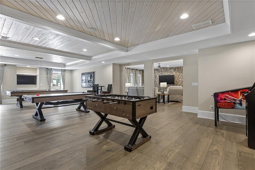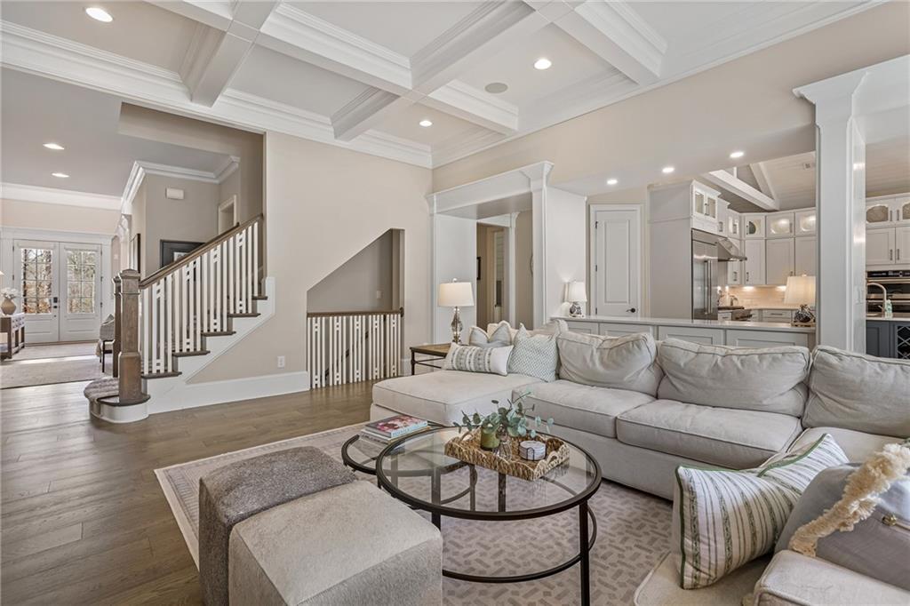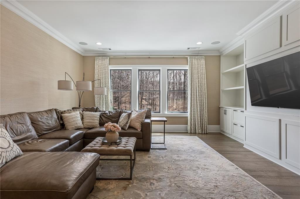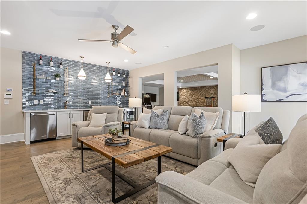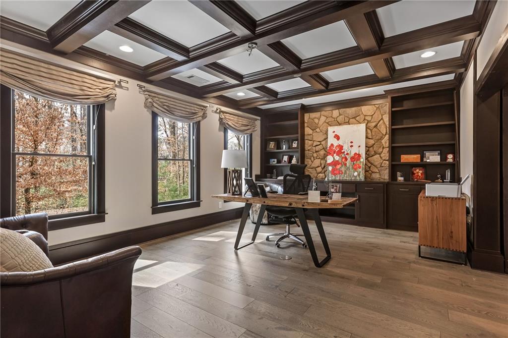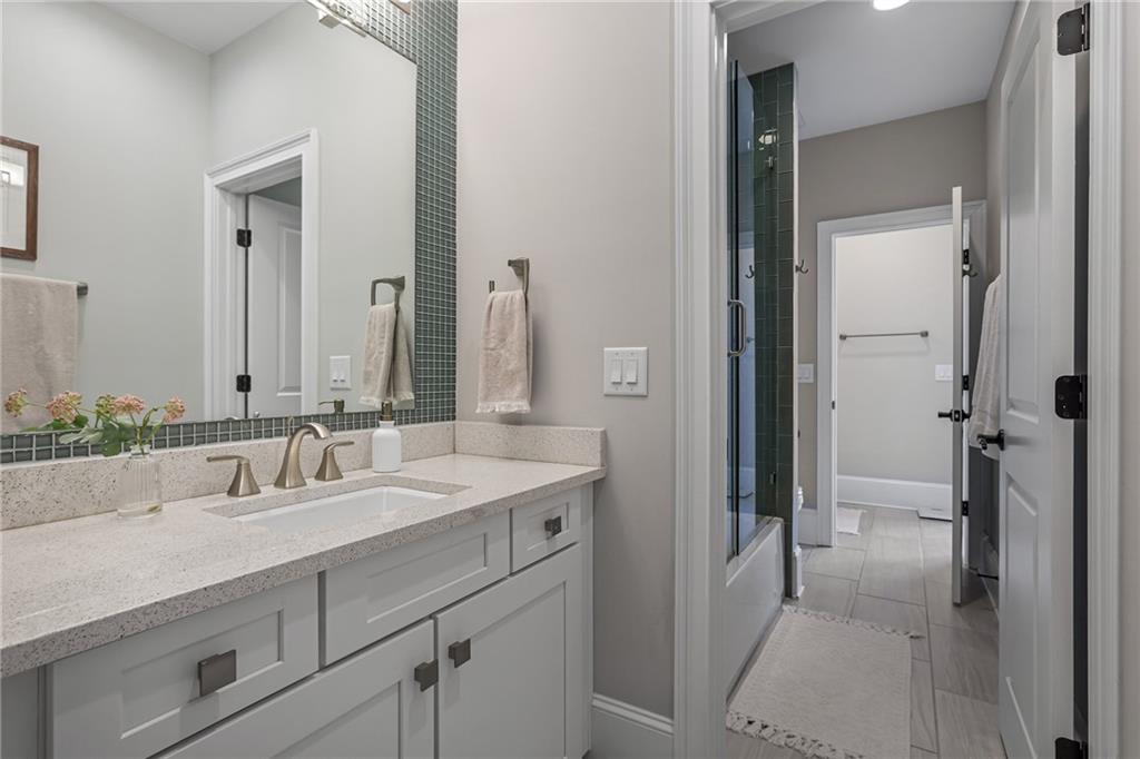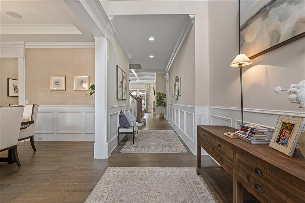 Experience the elegance of a better-than-new construction on 2.45 acres in Milton's highly sought-after The Grove neighborhood. This timeless brick home perfectly blends modern smart home technology and classic design, enhanced by private, breathtaking outdoor living spaces. The home commences with a welcoming covered front porch and double entry doors opening to the inviting foyer. Off the foyer, an elegant dining room features beautiful millwork, hardwood floors and a butler's pantry with a wet bar connecting to the kitchen. The heart of the home is the stunning gourmet kitchen outfitted with an oversized island, white double-stacked cabinetry, a pot filler over the range and JennAir stainless steel professional-grade appliances. The kitchen flows seamlessly into a fireside dining area and the adjacent family room. A half bathroom, a laundry room and a mudroom with access to all four garages are easily accessed from the kitchen. Enjoy designer lighting, custom window treatments and meticulously crafted details, creating a warm and inviting atmosphere. Relax and unwind in the primary suite, conveniently located on the main level for easy living. Elegant and refined, the bedroom features floor-to-ceiling judge paneling and French doors to a private sun porch overlooking the backyard. The en suite bathroom impresses with separate vanities bisected by a freestanding bathtub and a seamless glass shower with multiple showerheads, two product niches and a bench. The sun-lit walk-in closet boasts a packing island and extensive built-ins for keeping everything organized. Upstairs, enjoy a media room with built-in off the landing, four bedrooms and three bathrooms. The fully finished basement adds even more living and entertainment space with a second family room, a kitchenette, a game room, a bedroom currently used as a gym, a bathroom and an office with a coffered ceiling. Venture outside to the incredible outdoor living area, which includes a fantastic pool, spa, large pool deck, a covered patio with a grilling station and an enviable pool cabana. This indoor-outdoor living space consists of a large sitting area, a masonry fireplace and a pool bathroom. The backyard is completely fenced and includes a grassy play area. The living spaces continue over the detached two-car garage, which includes a carriage house studio apartment with a full bathroom. Ideally located, The Grove offers proximity to top-rated schools, scenic trails and retail destinations in Crabapple, Milton, Alpharetta and more. Live in the heart of Milton on this stunning property offering the perfect balance of privacy and convenience. Welcome home!