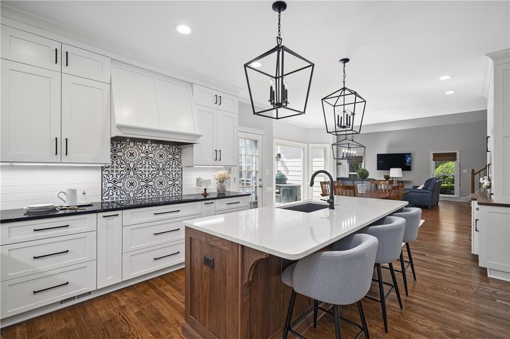 Tucked within sought-after Holcombe's Farm, this beautifully updated residence combines timeless curb appeal with thoughtfully curated interiors and exceptional outdoor living. A stacked-stone facade, shingle siding and a charming front porch with Chippendale railings set an elegant tone.