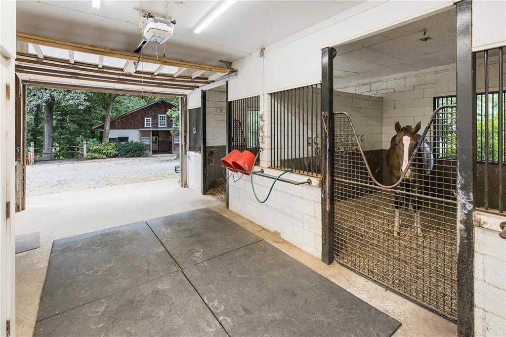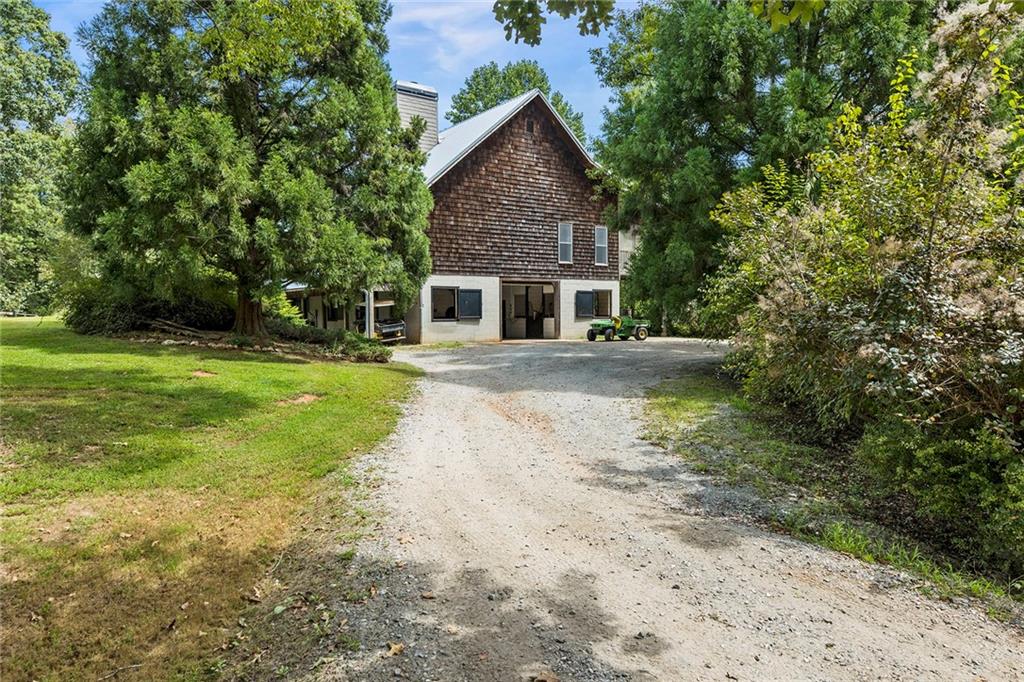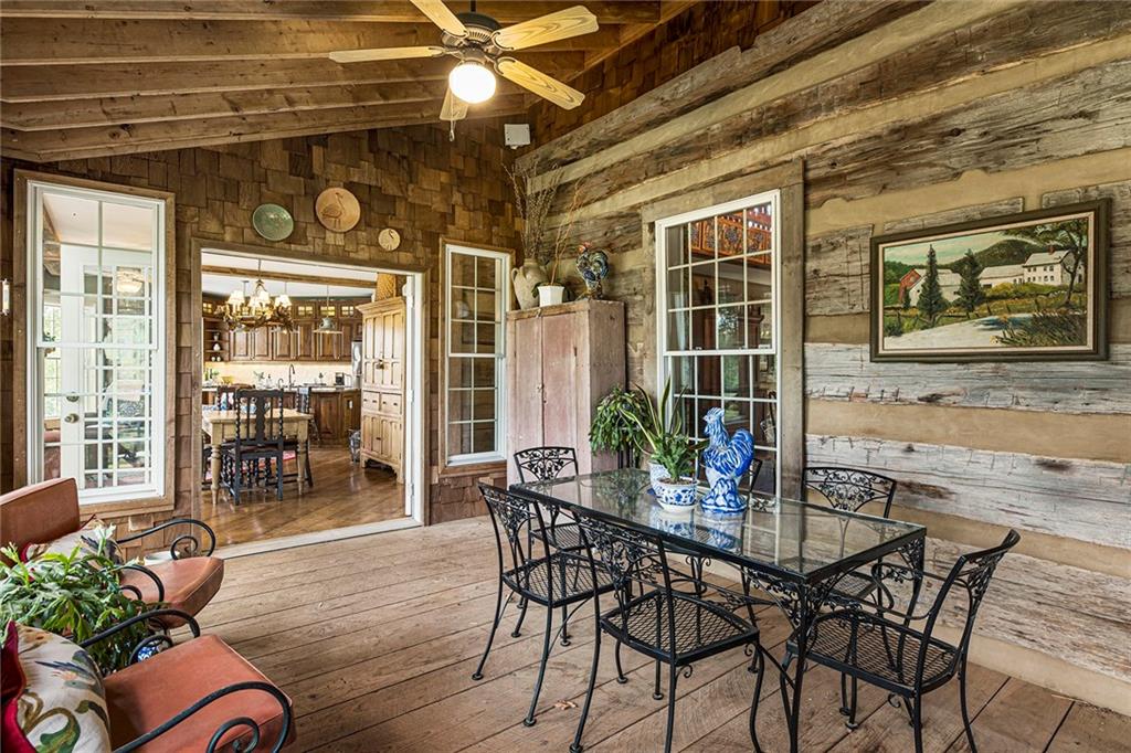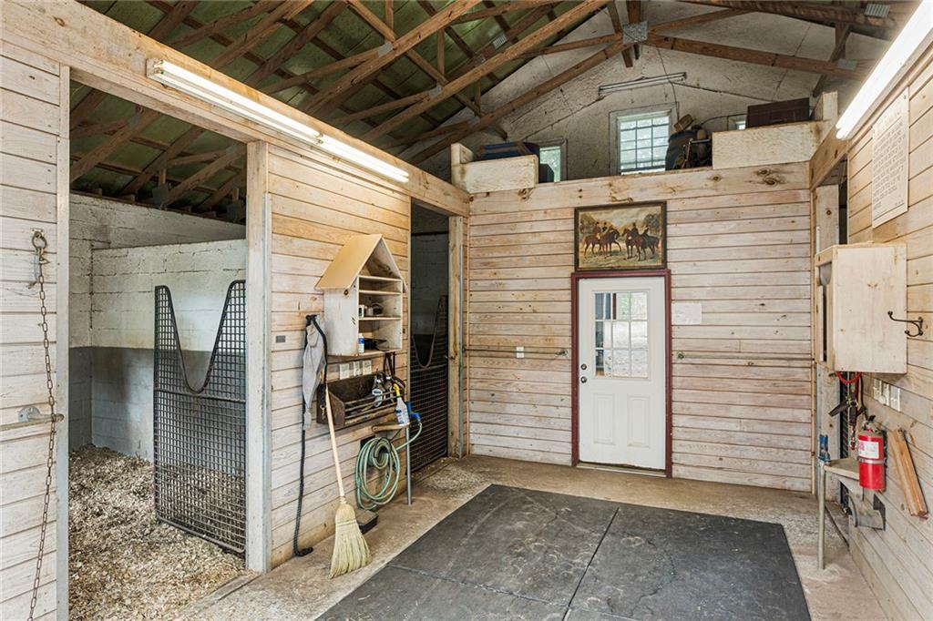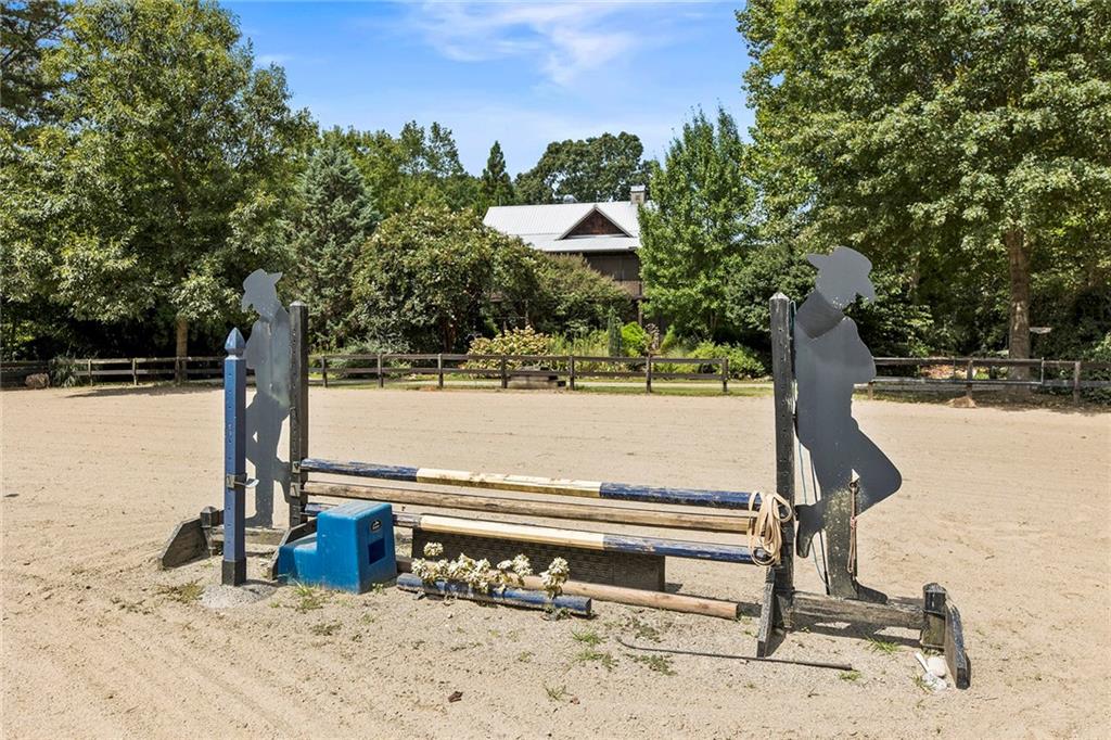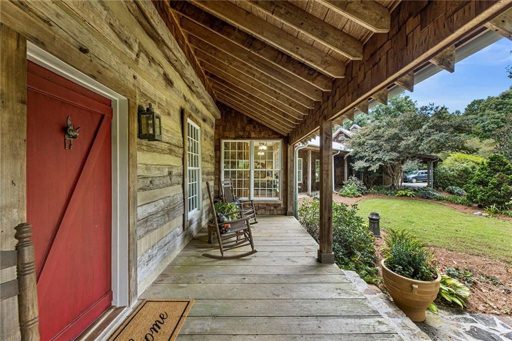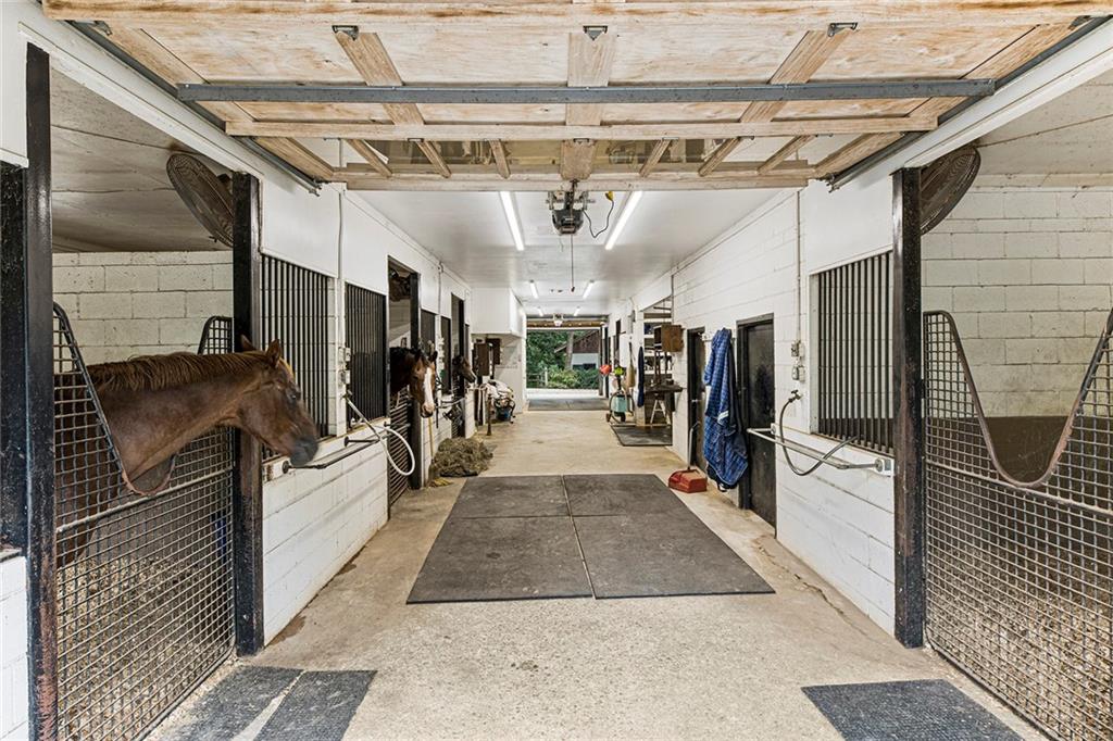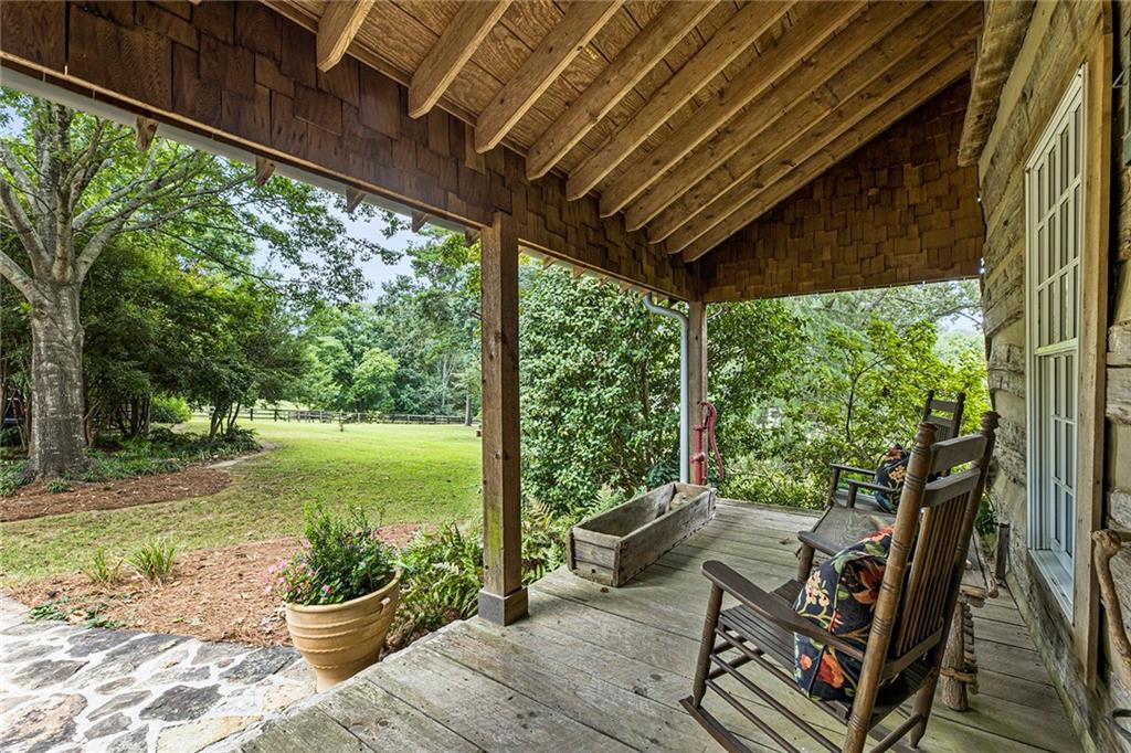 Experience absolute perfection on this 70 acre equestrian farm with rolling pastureland, three barns with 16 stalls, an incredible main house, a pool and a large guest house with elevator. Approached through a gated entry, the driveway winds past acres of fenced pastureland, beautiful hardwoods and riding arenas as you proceed to the wood and cedar-shingled main house. Evoking a bygone era, the home feels centuries old yet provides all the perks of modern living. Enter from the covered front porch into the enormous two-story grand hall with dining room, meant to feel like a log cabin with its wood-lined walls, wide-plank floors, exposed trusses and large stone fireplace. The adjacent gourmet kitchen provides all the luxuries for today's lifestyle with a large island, double-stacked cabinetry, stainless steel appliances, stone countertops, charming butler pantry and walk in pantry, a farmhouse sink and a nearby substantial laundry room. The kitchen flows seamlessly into the fireside keeping room and casual dining area. Huge double-hung windows wrap around the room and frame the sprawling views of the surrounding fields. French doors lead to the charming oversized screened porch with plenty of room for separate dining and sitting areas. Three en-suite bedrooms and large mud room complete the main level. Upstairs, you will find a large open office loft space, overlooking the grand hall as well as the primary bedroom featuring a cathedral ceiling with rustic beams, a fireplace, stained glass clerestory windows, a dressing room with two walk-in closets and an en suite bathroom with dual vanities, a jetted bathtub and a separate shower. Head downstairs to the incredible Garden & Gun-style terrace level, which features a wine cellar, fireside professional theatre room two built-in desks, a wet bar, a slate tiled game room, a gym or bedroom and a full bathroom. Venture outside to the refreshing, heated, saltwater pool with a large stone pool deck, a diving board and a motorized retractable pool cover. The property also features a four-stall barn with a tack room, a 12-stall barn with a washroom, and ample storage space. Spacious guest cottage above with elevator up is on the second level with a two-bedroom guest house with large additional office space. Perfect for a caretaker, this luxurious guest house includes an open floor plan with a two-story cathedral ceiling in the dining and living rooms, a white kitchen with an island, two large bedrooms, two bathrooms and a huge screened porch. Completely private and bordering a lake and creek with charming walking bridge, the property also includes an oversized arena, a round pen and a considerable outbuilding with a workshop and additional storage. Short ride by horse to Dawson Forest with endless trails (trail ride, mountain bike, hike). The property is also located close to a Elliot Field Private Airport, Atlanta Motorsports Park, Amicalola Falls, Lake Lanier and the North Georgia Outlets. A once-in-a-lifetime opportunity, this property is an equestrian lover's paradise!