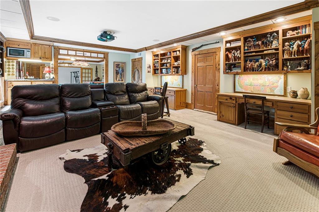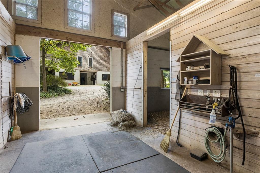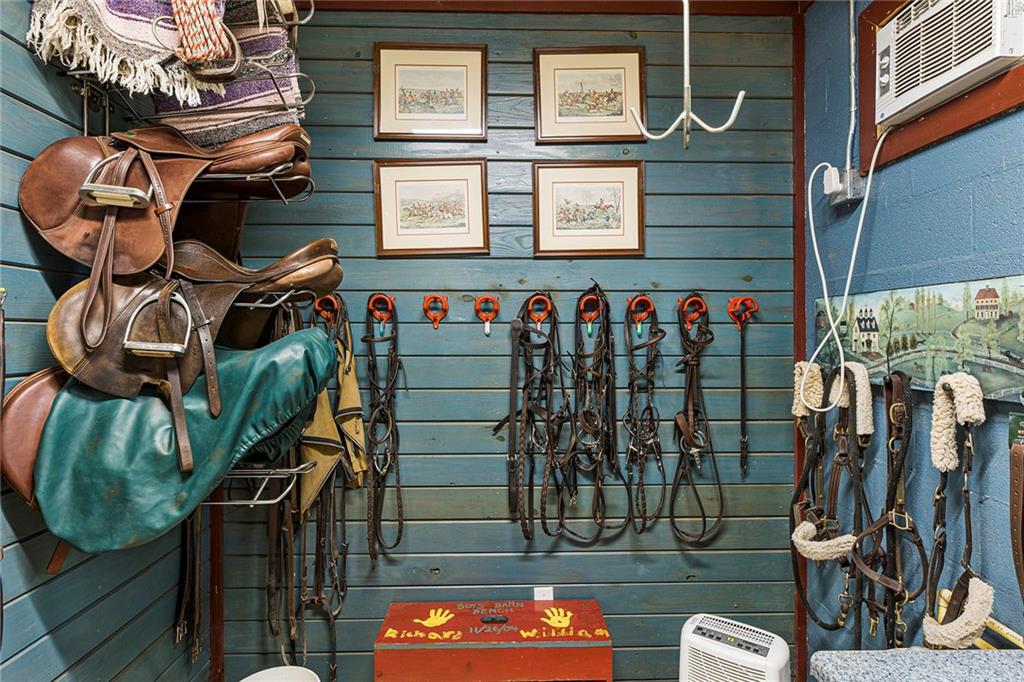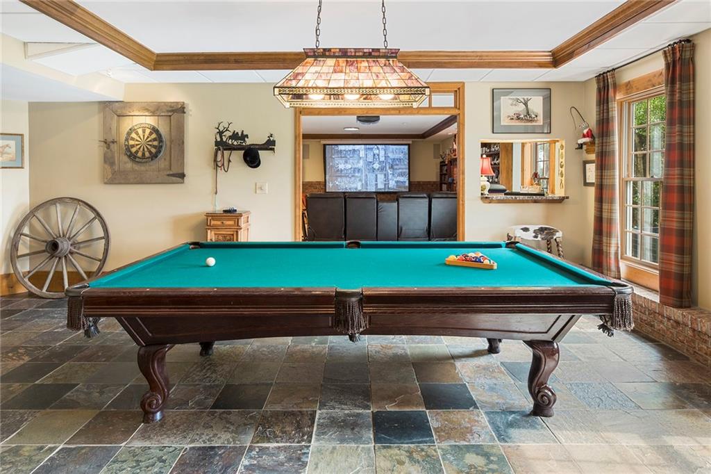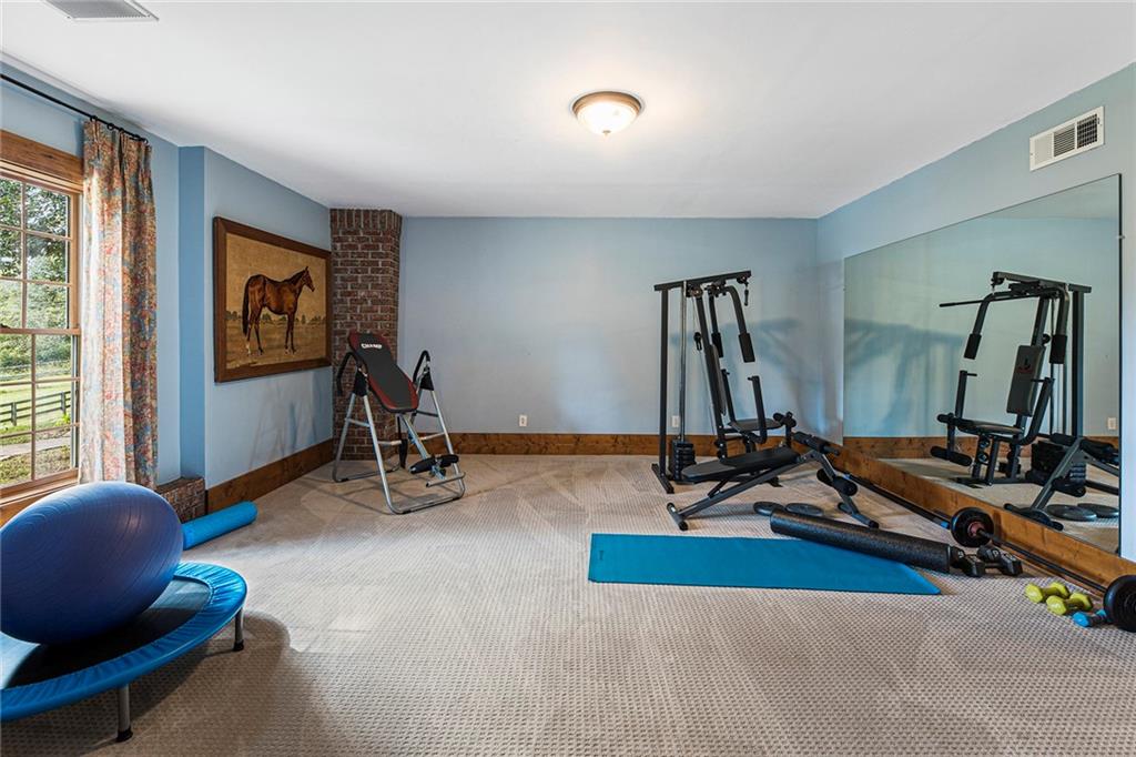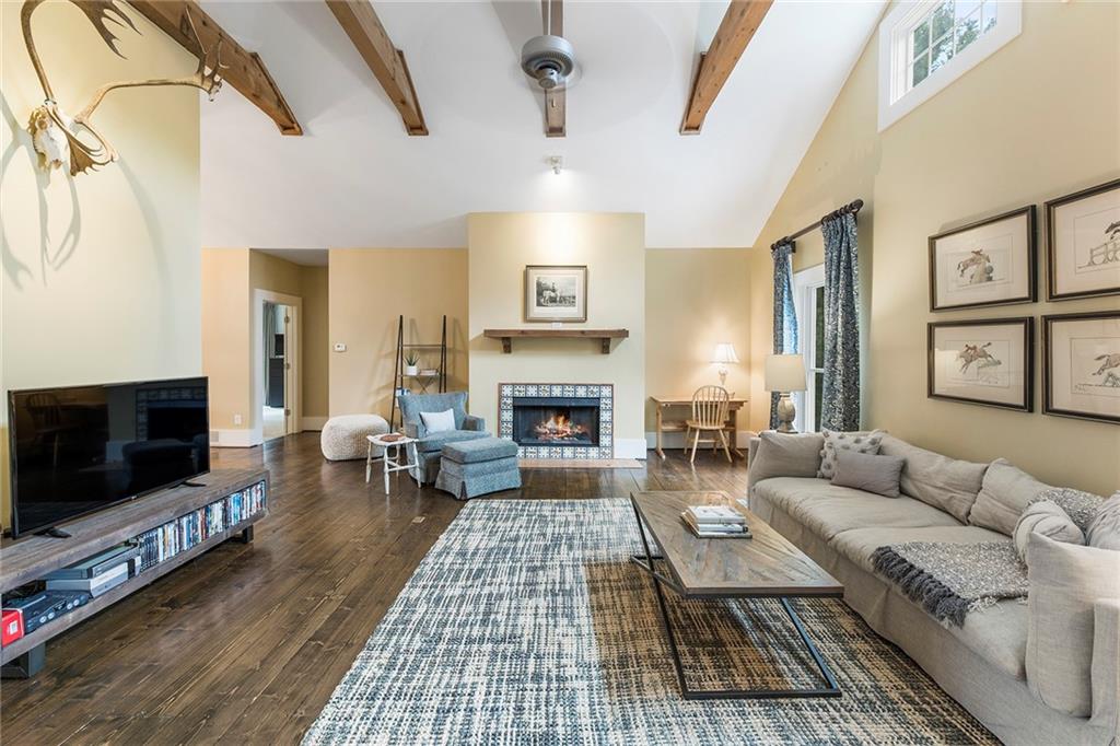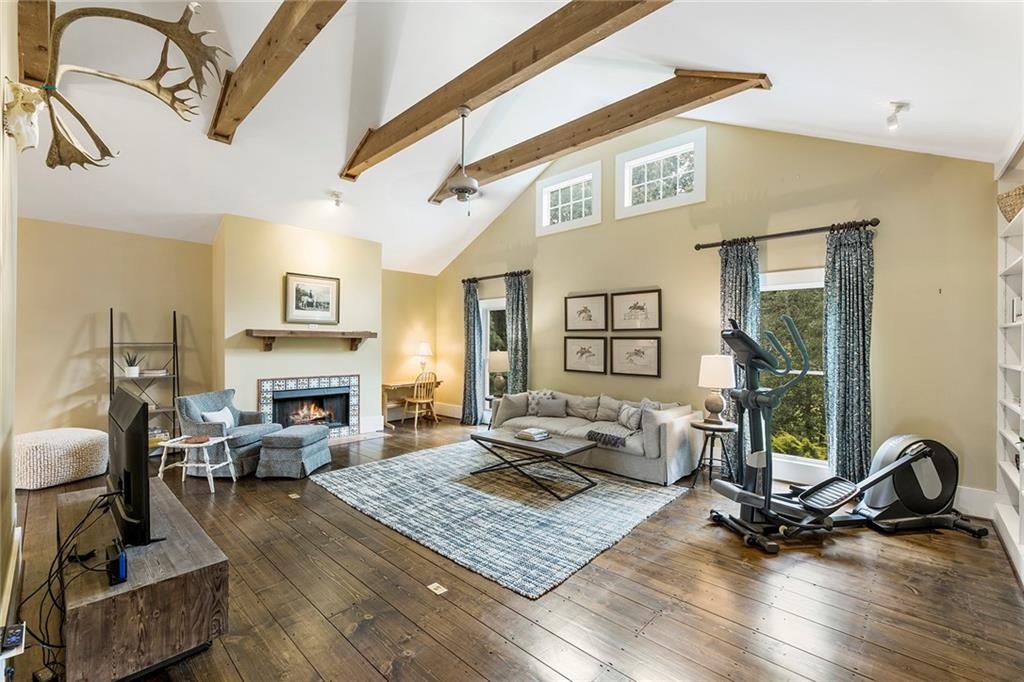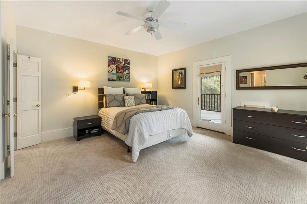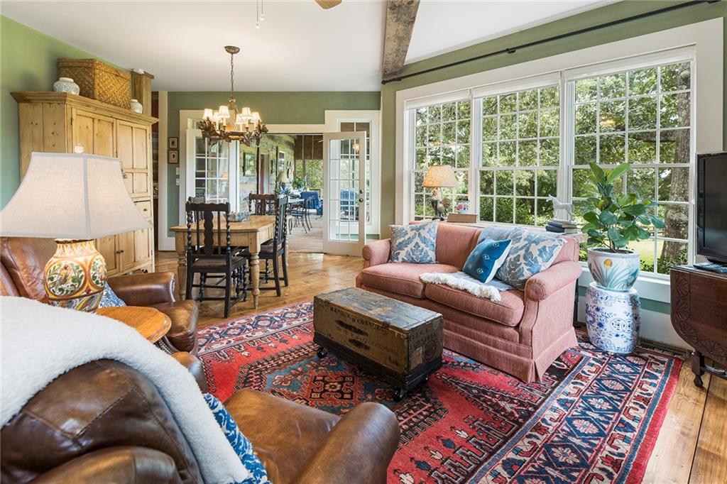 Experience absolute perfection on this 70 acre equestrian farm with rolling pastureland, three barns with 16 stalls, an incredible main house, a pool and a large guest house with elevator. Approached through a gated entry, the driveway winds past acres of fenced pastureland, beautiful hardwoods and riding arenas as you proceed to the wood and cedar-shingled main house. Evoking a bygone era, the home feels centuries old yet provides all the perks of modern living. Enter from the covered front porch into the enormous two-story grand hall with dining room, meant to feel like a log cabin with its wood-lined walls, wide-plank floors, exposed trusses and large stone fireplace. The adjacent gourmet kitchen provides all the luxuries for today's lifestyle with a large island, double-stacked cabinetry, stainless steel appliances, stone countertops, charming butler pantry and walk in pantry, a farmhouse sink and a nearby substantial laundry room. The kitchen flows seamlessly into the fireside keeping room and casual dining area. Huge double-hung windows wrap around the room and frame the sprawling views of the surrounding fields. French doors lead to the charming oversized screened porch with plenty of room for separate dining and sitting areas. Three en-suite bedrooms and large mud room complete the main level. Upstairs, you will find a large open office loft space, overlooking the grand hall as well as the primary bedroom featuring a cathedral ceiling with rustic beams, a fireplace, stained glass clerestory windows, a dressing room with two walk-in closets and an en suite bathroom with dual vanities, a jetted bathtub and a separate shower. Head downstairs to the incredible Garden & Gun-style terrace level, which features a wine cellar, fireside professional theatre room two built-in desks, a wet bar, a slate tiled game room, a gym or bedroom and a full bathroom. Venture outside to the refreshing, heated, saltwater pool with a large stone pool deck, a diving board and a motorized retractable pool cover. The property also features a four-stall barn with a tack room, a 12-stall barn with a washroom, and ample storage space. Spacious guest cottage above with elevator up is on the second level with a two-bedroom guest house with large additional office space. Perfect for a caretaker, this luxurious guest house includes an open floor plan with a two-story cathedral ceiling in the dining and living rooms, a white kitchen with an island, two large bedrooms, two bathrooms and a huge screened porch. Completely private and bordering a lake and creek with charming walking bridge, the property also includes an oversized arena, a round pen and a considerable outbuilding with a workshop and additional storage. Short ride by horse to Dawson Forest with endless trails (trail ride, mountain bike, hike). The property is also located close to a Elliot Field Private Airport, Atlanta Motorsports Park, Amicalola Falls, Lake Lanier and the North Georgia Outlets. A once-in-a-lifetime opportunity, this property is an equestrian lover's paradise!
