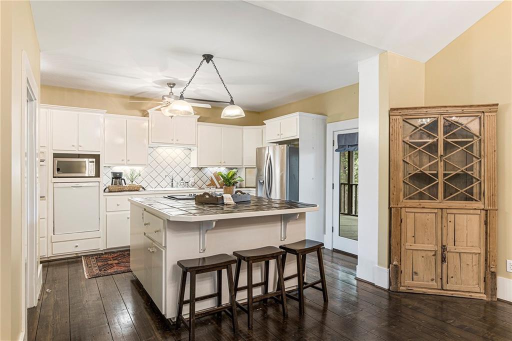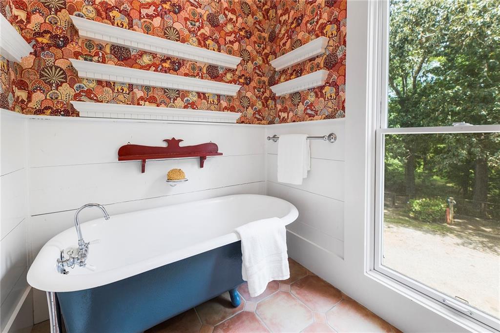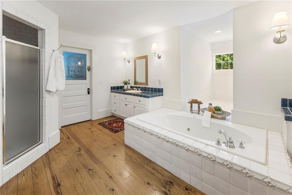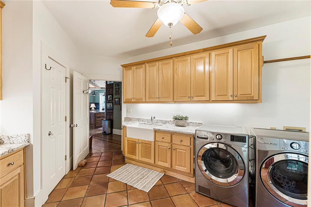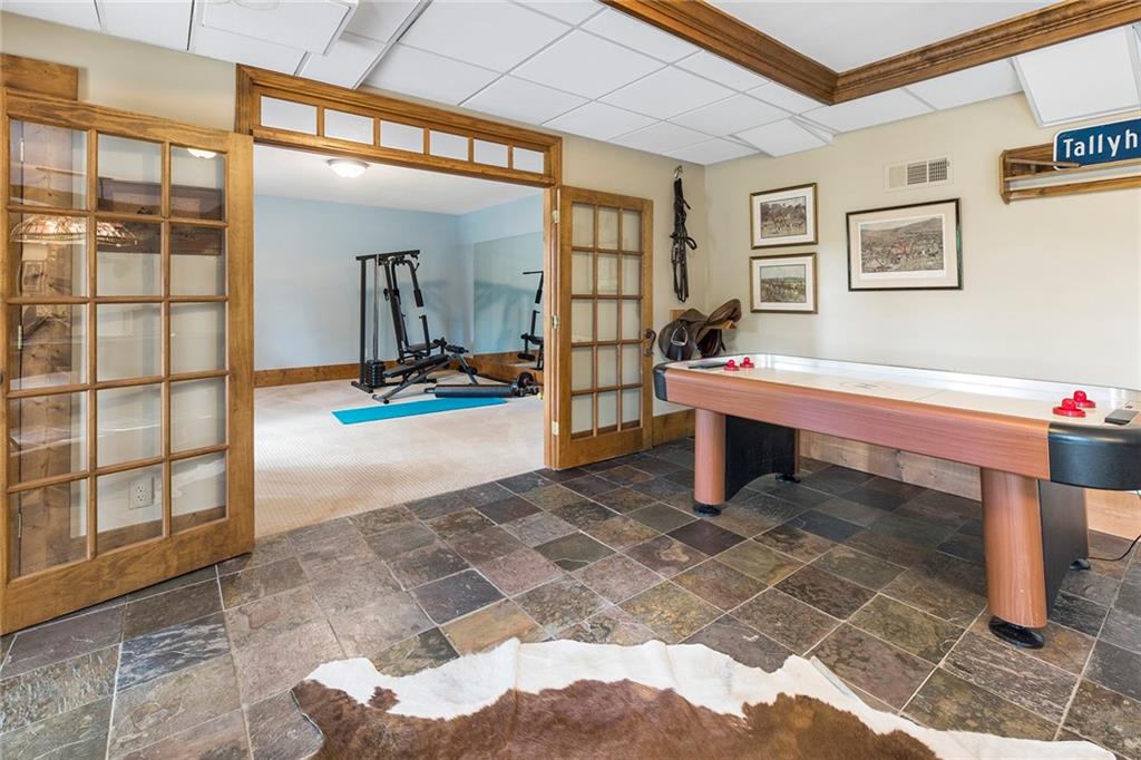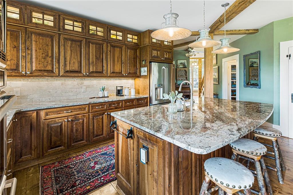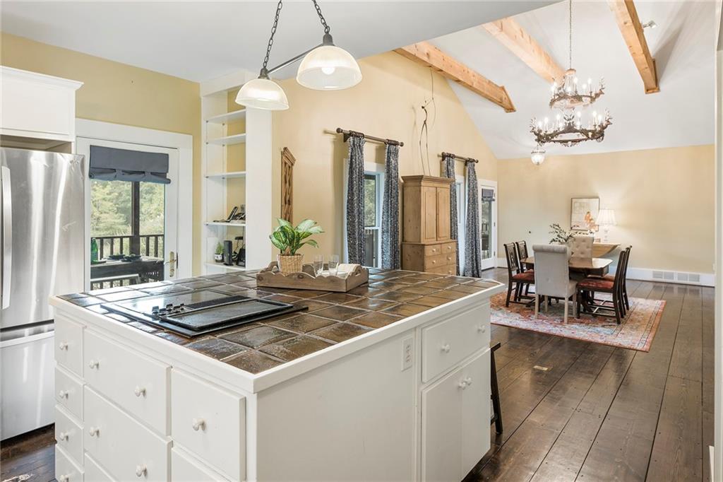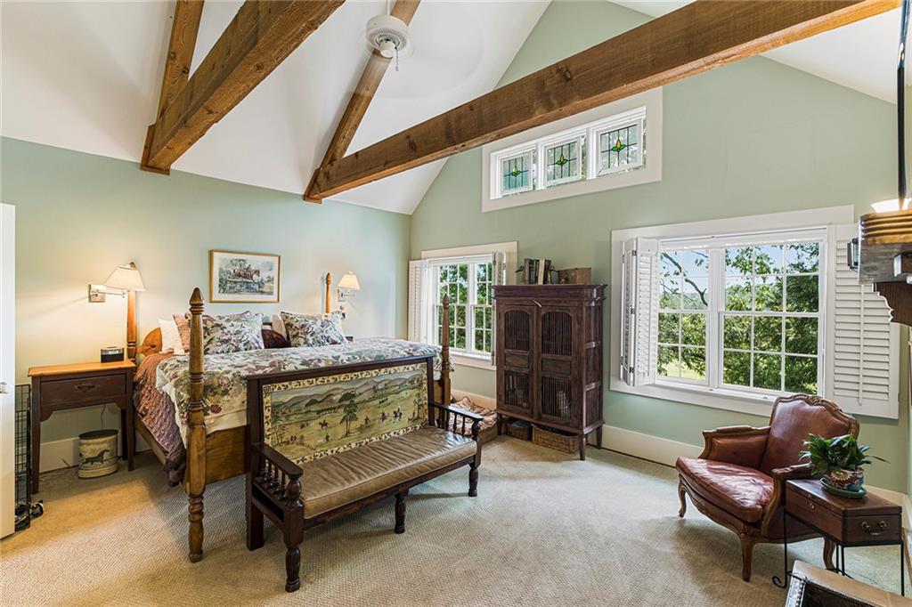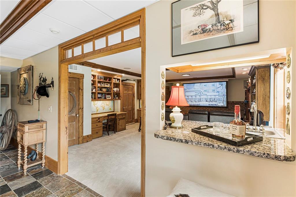 Experience absolute perfection on this 70 acre equestrian farm with rolling pastureland, three barns with 16 stalls, an incredible main house, a pool and a large guest house with elevator. Approached through a gated entry, the driveway winds past acres of fenced pastureland, beautiful hardwoods and riding arenas as you proceed to the wood and cedar-shingled main house. Evoking a bygone era, the home feels centuries old yet provides all the perks of modern living. Enter from the covered front porch into the enormous two-story grand hall with dining room, meant to feel like a log cabin with its wood-lined walls, wide-plank floors, exposed trusses and large stone fireplace. The adjacent gourmet kitchen provides all the luxuries for today's lifestyle with a large island, double-stacked cabinetry, stainless steel appliances, stone countertops, charming butler pantry and walk in pantry, a farmhouse sink and a nearby substantial laundry room. The kitchen flows seamlessly into the fireside keeping room and casual dining area. Huge double-hung windows wrap around the room and frame the sprawling views of the surrounding fields. French doors lead to the charming oversized screened porch with plenty of room for separate dining and sitting areas. Three en-suite bedrooms and large mud room complete the main level. Upstairs, you will find a large open office loft space, overlooking the grand hall as well as the primary bedroom featuring a cathedral ceiling with rustic beams, a fireplace, stained glass clerestory windows, a dressing room with two walk-in closets and an en suite bathroom with dual vanities, a jetted bathtub and a separate shower. Head downstairs to the incredible Garden & Gun-style terrace level, which features a wine cellar, fireside professional theatre room two built-in desks, a wet bar, a slate tiled game room, a gym or bedroom and a full bathroom. Venture outside to the refreshing, heated, saltwater pool with a large stone pool deck, a diving board and a motorized retractable pool cover. The property also features a four-stall barn with a tack room, a 12-stall barn with a washroom, and ample storage space. Spacious guest cottage above with elevator up is on the second level with a two-bedroom guest house with large additional office space. Perfect for a caretaker, this luxurious guest house includes an open floor plan with a two-story cathedral ceiling in the dining and living rooms, a white kitchen with an island, two large bedrooms, two bathrooms and a huge screened porch. Completely private and bordering a lake and creek with charming walking bridge, the property also includes an oversized arena, a round pen and a considerable outbuilding with a workshop and additional storage. Short ride by horse to Dawson Forest with endless trails (trail ride, mountain bike, hike). The property is also located close to a Elliot Field Private Airport, Atlanta Motorsports Park, Amicalola Falls, Lake Lanier and the North Georgia Outlets. A once-in-a-lifetime opportunity, this property is an equestrian lover's paradise!