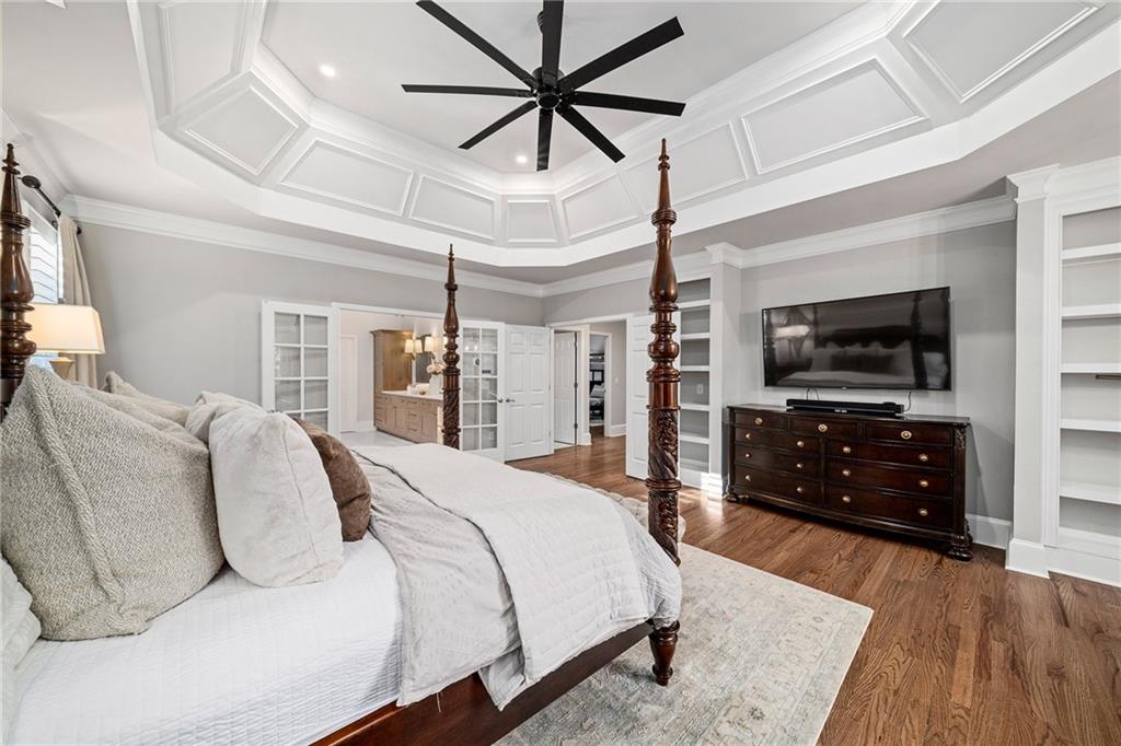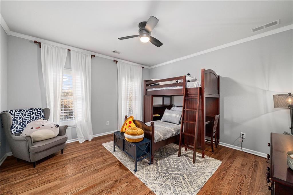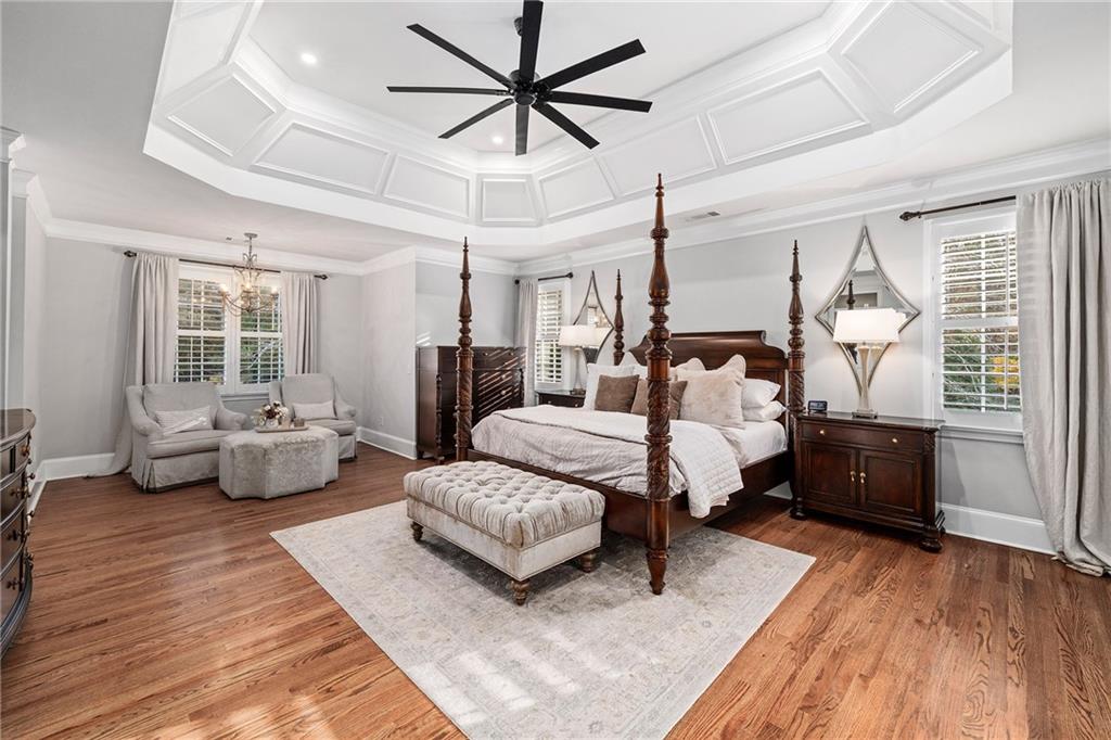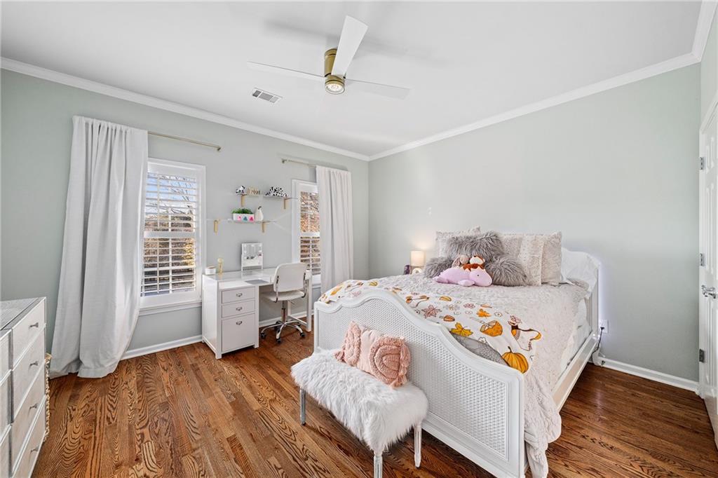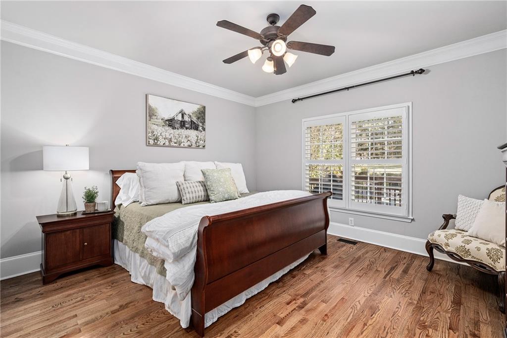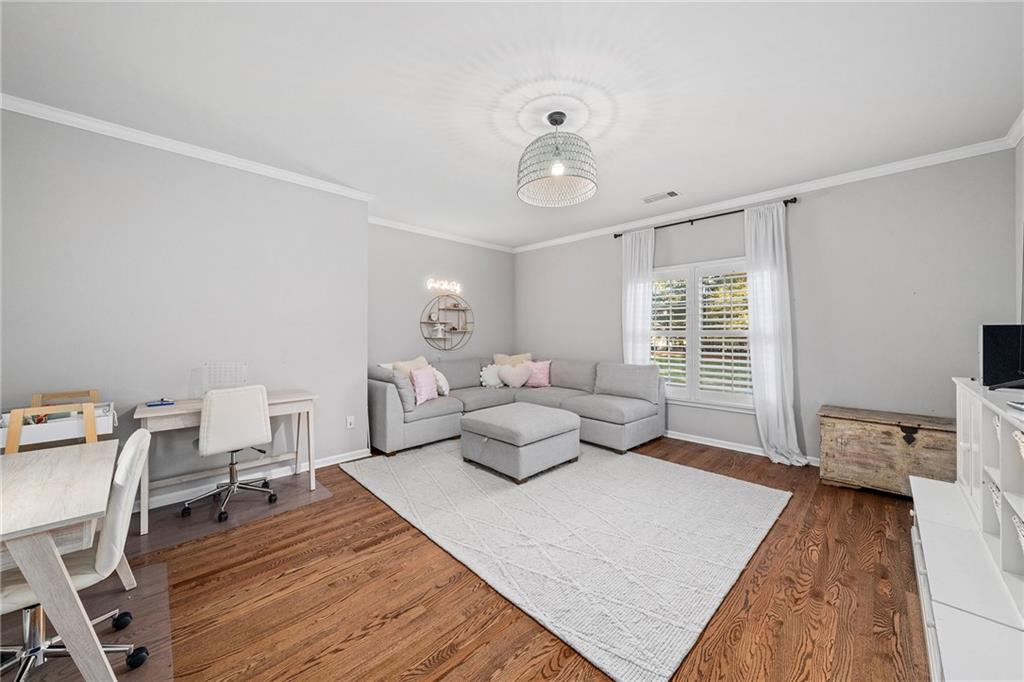 Inside, a bright two story foyer opens to hardwood floors that continue throughout the main and upper levels including all bedrooms. Plantation shutters, updated lighting, and detailed trim work create a timeless backdrop for both everyday living and elegant entertaining. The formal dining room and offiice sit gracefully at the front of the home, while the layout naturally draws you into the heart of the house with a more open concept.