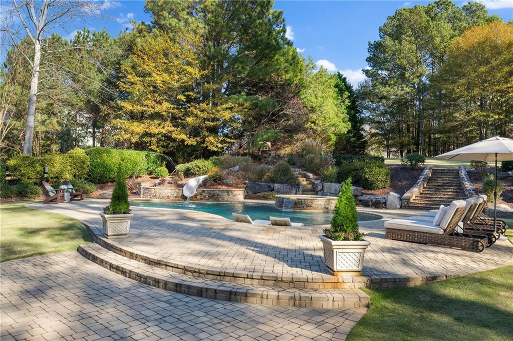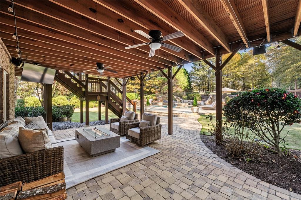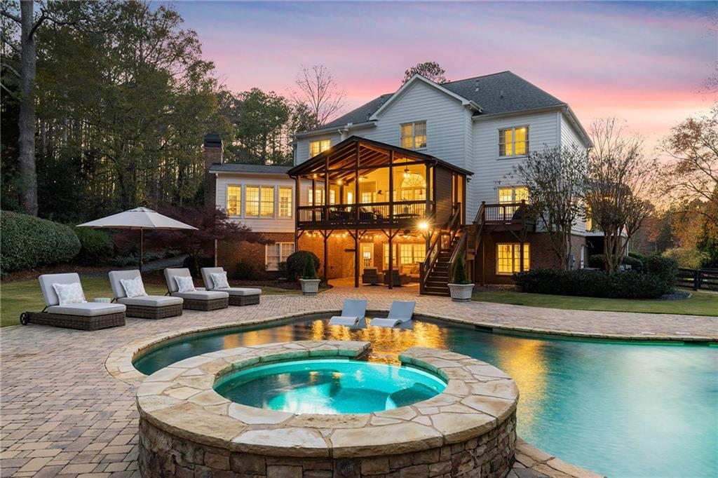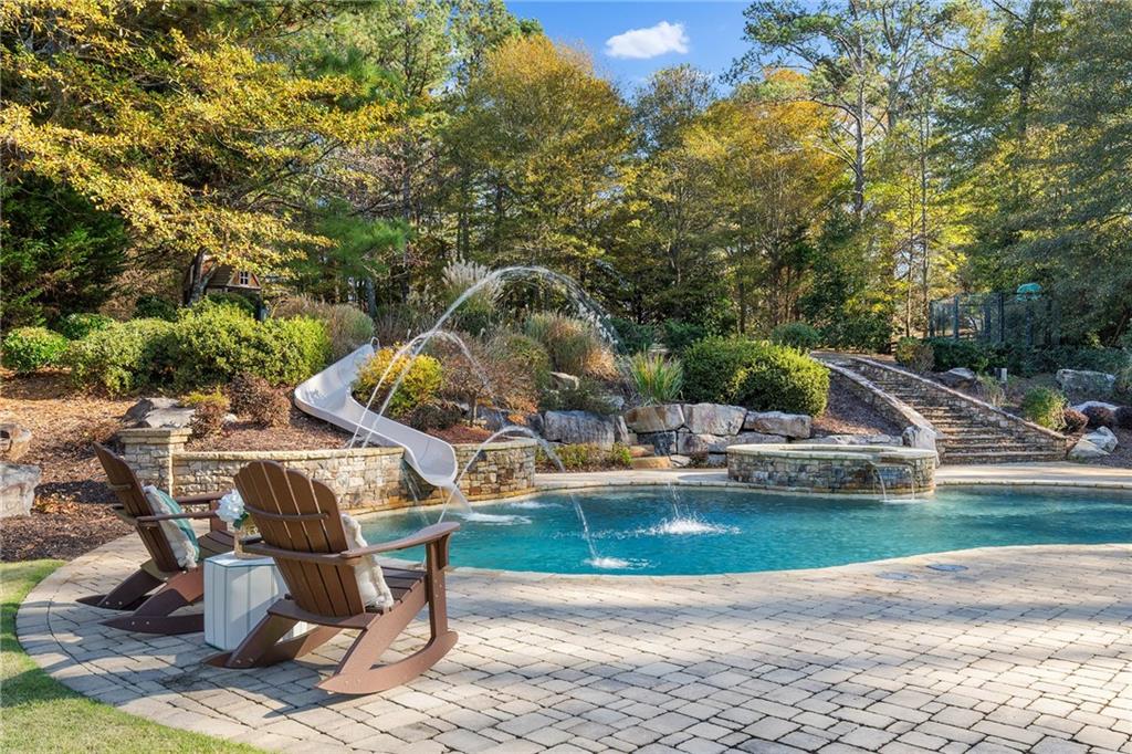 Outdoors, the property becomes an everyday escape. A sparkling pool with a slide and hot tub sits within more than 2,200 square feet of pavers that create multiple lounging and entertaining areas. The covered deck and lower patio overlook extensive landscaping crafted for beauty and privacy. Three outdoor speaker zones, an automated mosquito system, full perimeter fencing, an invisible dog fence and a hidden storage area for toys and equipment add comfort and convenience. An expansive parking area accommodates teens, guests or gatherings with ease.