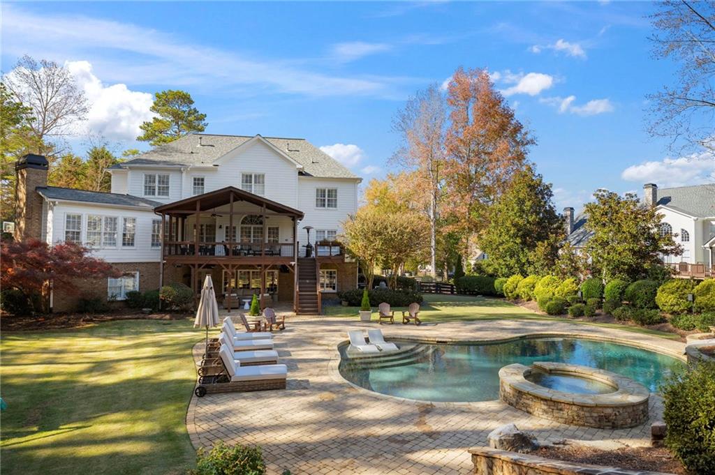 Set on a private cul de sac in the sought after swim/tennis community of Nettlebrook Farms, this beautifully updated Milton residence brings together classic curb appeal, curated interiors, and a true resort style outdoor experience. Hardiplank exterior, double front doors and newly added wrought iron railings introduce the home with quiet sophistication, while mature landscaping frames the entry and hints at the thoughtful updates found throughout.