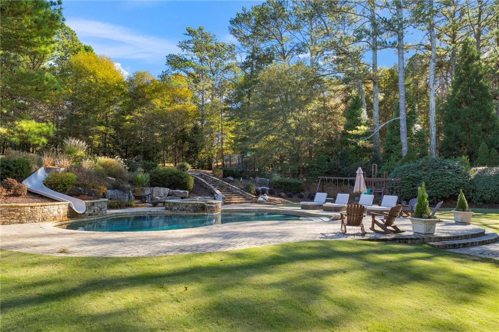 Outdoors, the property becomes an everyday escape. A sparkling pool with a slide and hot tub sits within more than two thousand two hundred square feet of pavers that create multiple lounging and entertaining areas. The covered deck and lower patio overlook extensive landscaping crafted for beauty and privacy. Three outdoor speaker zones, an automated mosquito system, full perimeter fencing, an invisible dog fence and a hidden storage area for toys and equipment add comfort and convenience. An expansive parking area accommodates teens, guests or gatherings with ease.