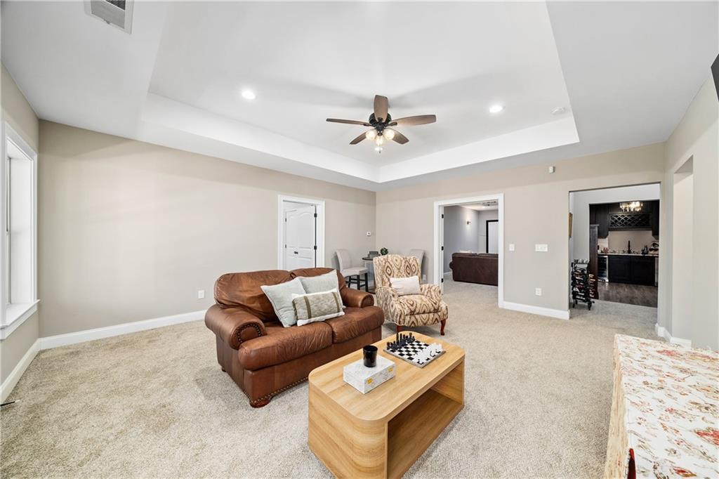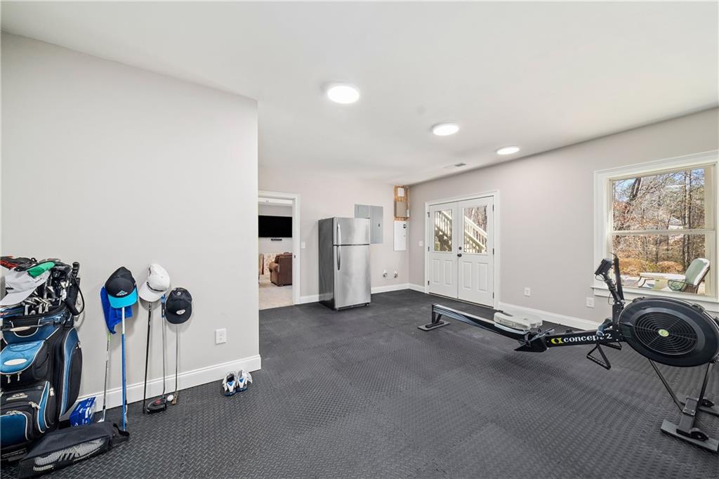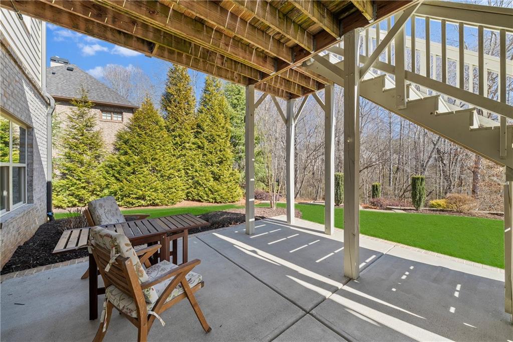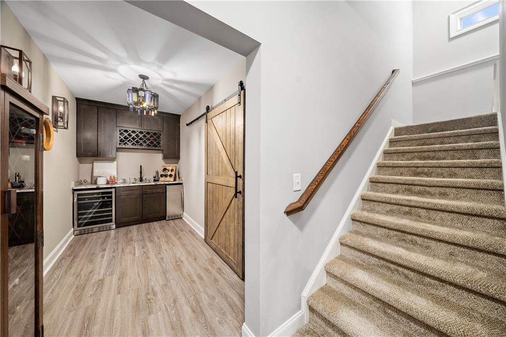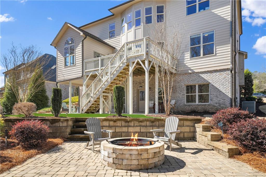 The finished terrace level extends the living space with a media room, recreation room, large gym, private office or additional bedroom, and a full bath with walk in shower. A custom bar with ice maker and wine refrigerator makes this level ideal for entertaining. Ample storage completes the space. Outdoors, a covered patio beneath the deck provides year round enjoyment, and a dedicated firepit area invites evenings under the stars.