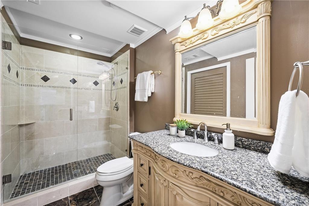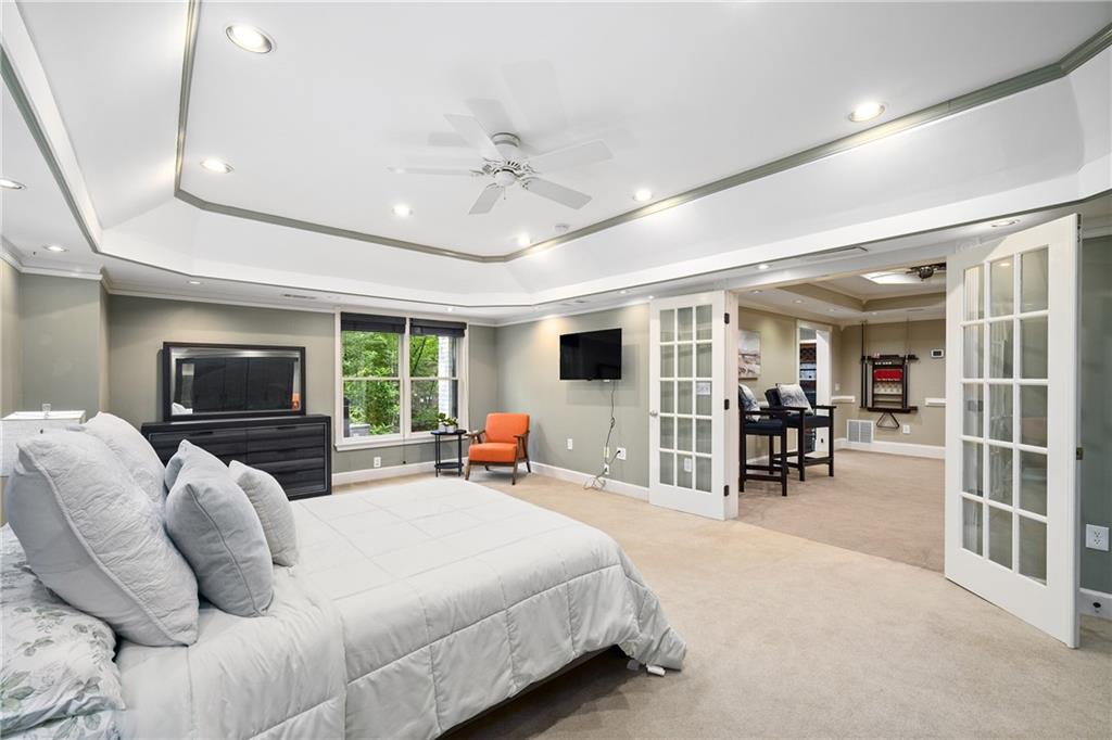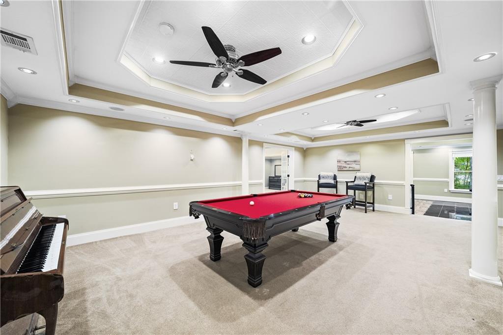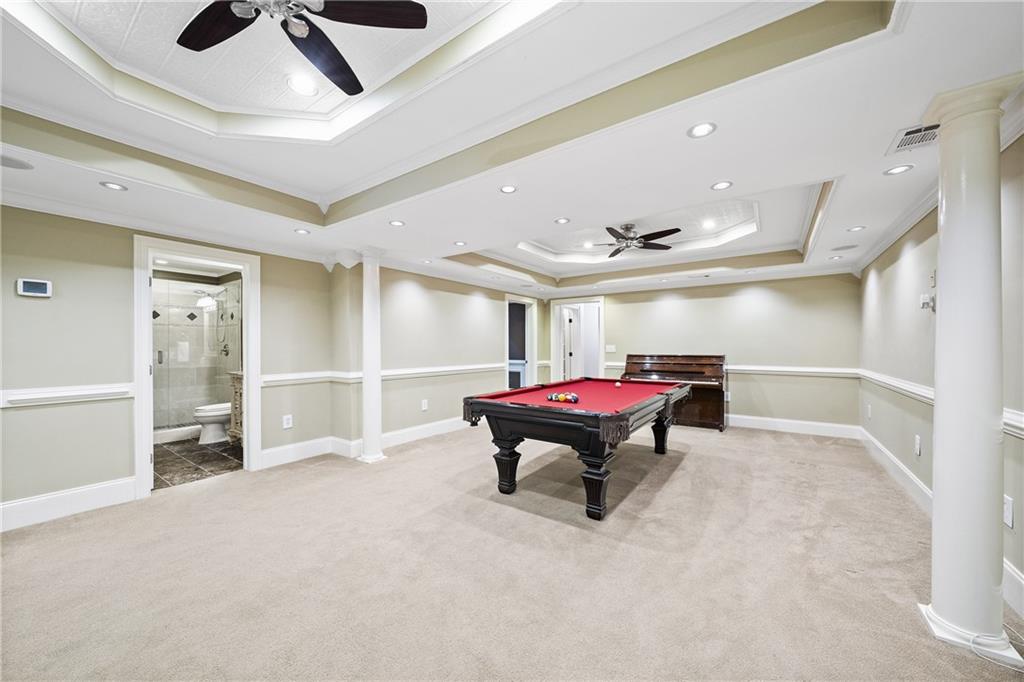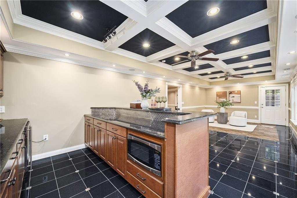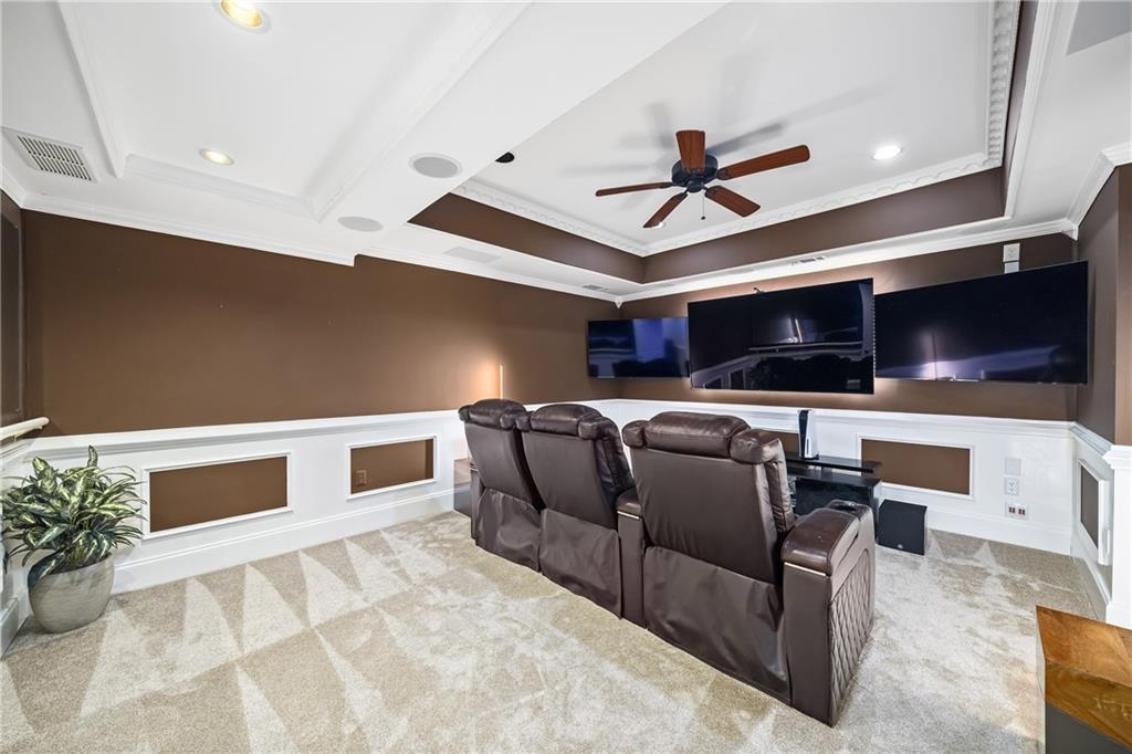 The daylight terrace level extends the home's living spaces with a recreation room, dedicated home theater, gym, kitchenette/bar area and opens to the backyard. This level also includes a spacious bedroom and full bath, perfect for entertaining or accommodating guests.