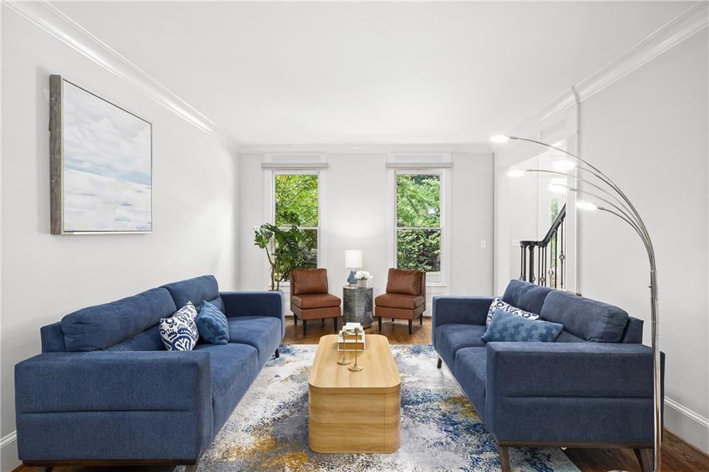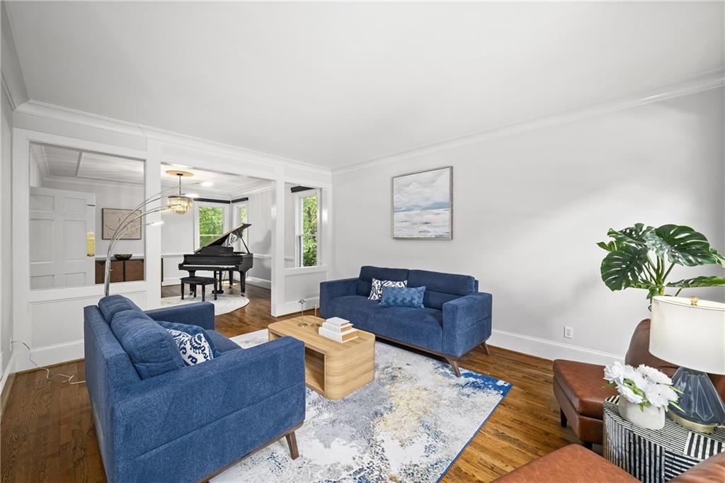 Outdoor living is equally inviting, with a level, wooded backyard offering ample space for a future pool, play lawn, or gardens. Multiple patios provide seamless indoor-outdoor living and the perfect setting for both quiet mornings and lively gatherings.