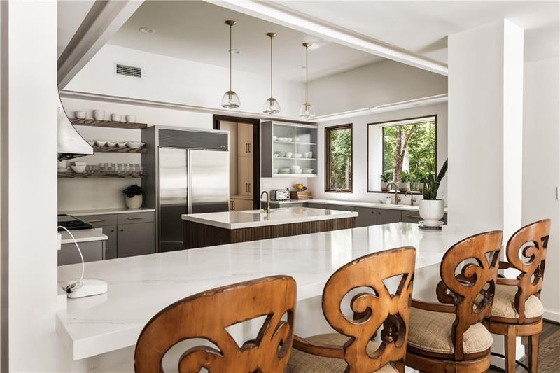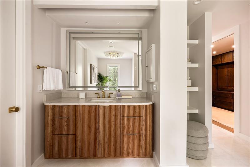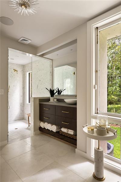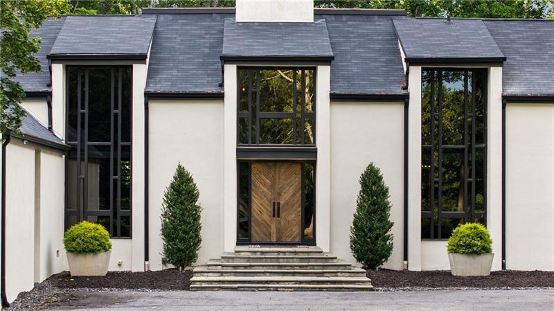 Tucked discreetly behind gates on nearly 11 pastoral acres, Northwind is a residence of remarkable provenance and rare scale. Conceived by celebrated architect Henri Jova and commissioned by philanthropist Peter Abreu, this modernist estate is a masterwork of spatial drama, quiet luxury, and architectural clarity, an extraordinary convergence of form and function, history and modernity. Approached via a long, tree-lined drive, the home reveals itself slowly, with monumental geometry set against a backdrop of hardwood forest and rolling lawns. Inside, grandly scaled rooms, originally designed to accommodate heirloom furnishings, unfold in a series of dramatic volumes. A sunken living room crowned by a soaring 30-foot ceiling is encased in walls of glass, dissolving the boundary between interior and landscape. Clean lines and expressive materials reflect Jova's signature style, emphasizing transparency, proportion, and connection to site. The residence has been thoughtfully reimagined by its current owner, balancing reverence for the original architecture with nuanced modern updates. Living, dining, and entertaining spaces are fluid and generous, anchored by a re-envisioned kitchen finished in terrazzo and framed by retractable Pella glass doors that open seamlessly to the expansive outdoor terrace and pool. Overlooking the pool is a fully self-contained A-frame guest house, a striking architectural moment in its own right. With its original angular roofline preserved, the guest house offers a full kitchen, living room, bedroom, and full bath, providing a true secondary residence that feels both private and connected. The primary suite occupies its own wing and functions as a private apartment, complete with sitting room, study, morning kitchen, dual dressing rooms, and a separate bedroom or yoga space. A second level offers three additional bedrooms and a full suite of recreational spaces, including a media lounge and billiards room, each oriented toward the surrounding grounds. Zoned agricultural, the property offers flexibility for equestrian use or curated landscaping, and includes a three-car garage, detached studio structure, and additional outbuildings. Despite its seclusion, Northwind sits just minutes from Canton Street, The Avenue East Cobb, and Avalon, offering an uncommon level of privacy without sacrificing proximity to the best of North Atlanta. An architectural landmark, a legacy estate, and an exceedingly rare land offering, Northwind presents a once-in-a-generation opportunity to own a true cultural and architectural artifact in one of North Atlanta's most accessible and desirable suburbs.
